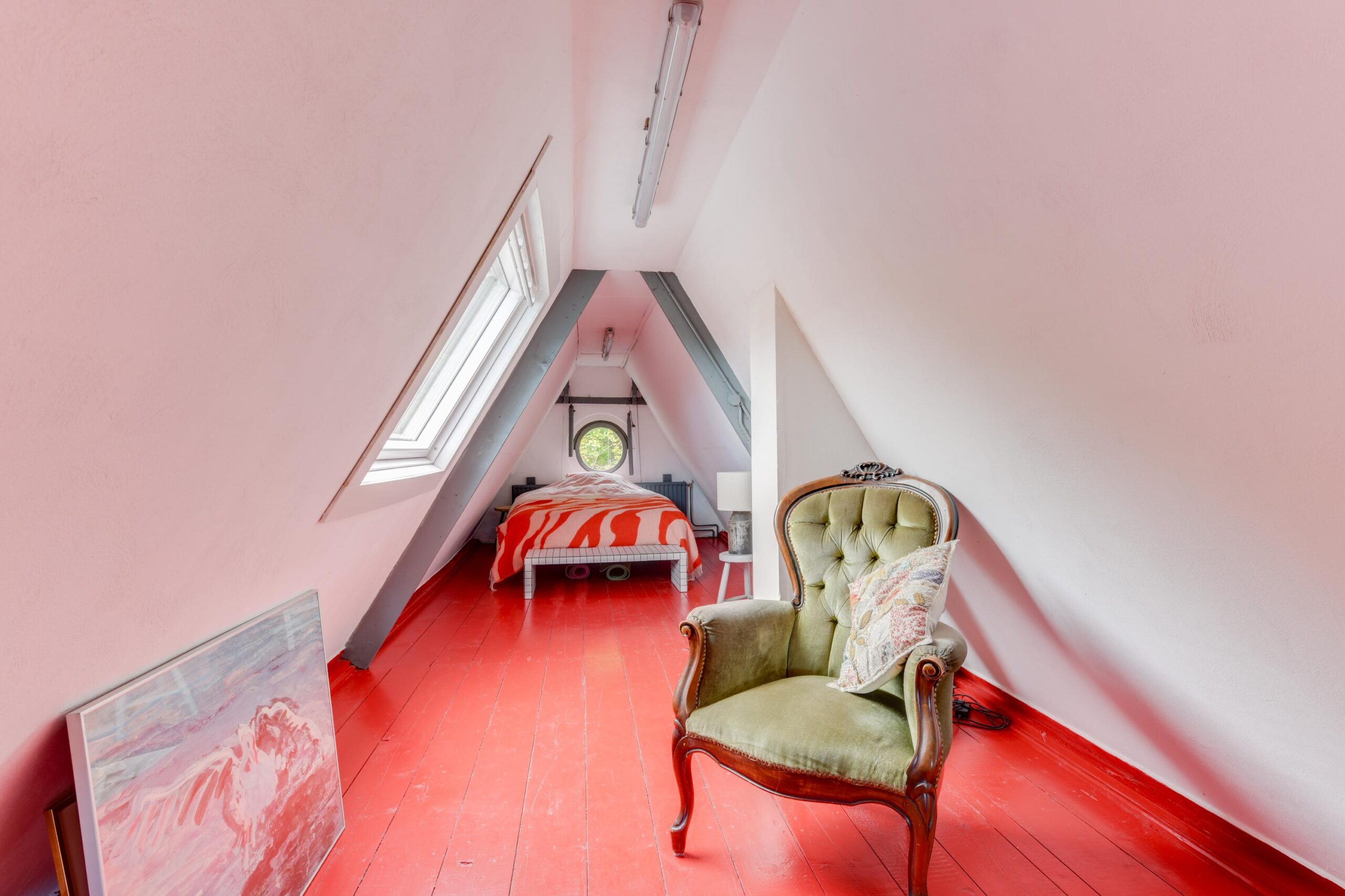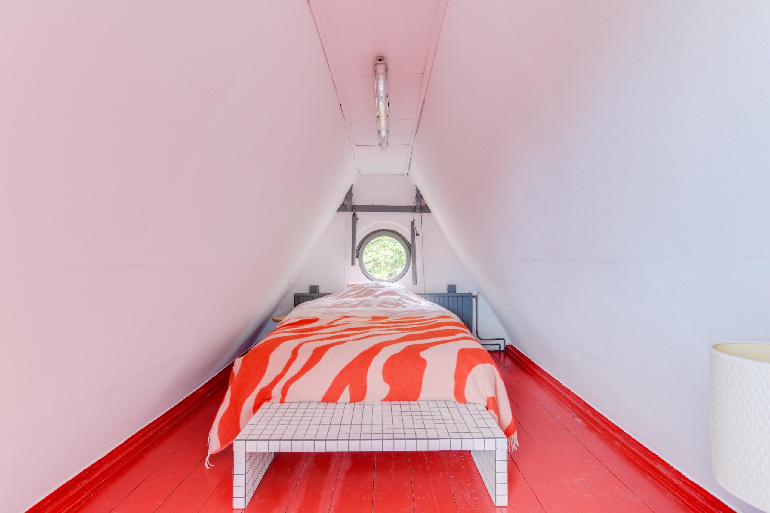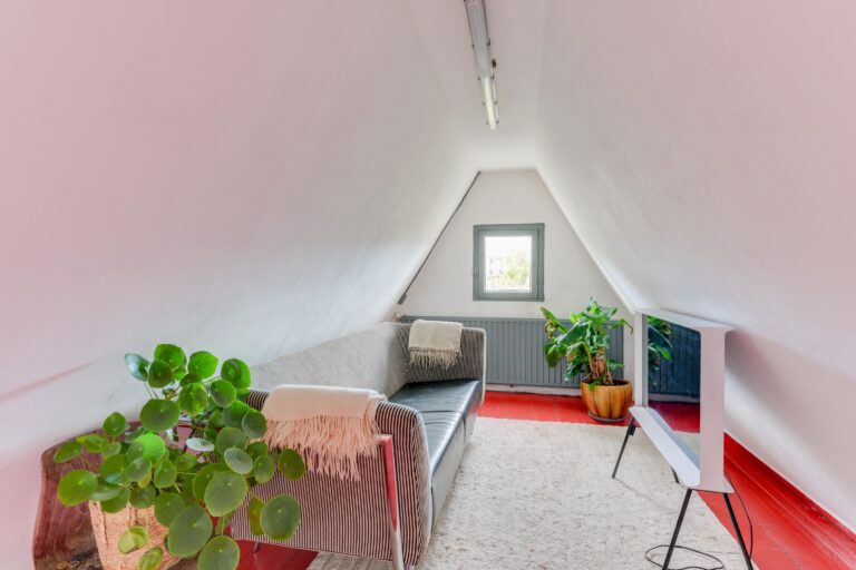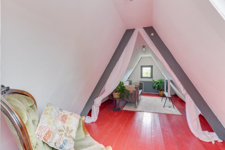 Een vaste trap brengt je naar de zolderverdieping, met een dakraam en ramen in de voor- en achtergevel. Dankzij deze ramen heeft deze ruimte een fijne sfeer – ideaal als werkplek, hobbyruimte of logeerkamer.