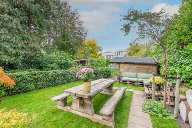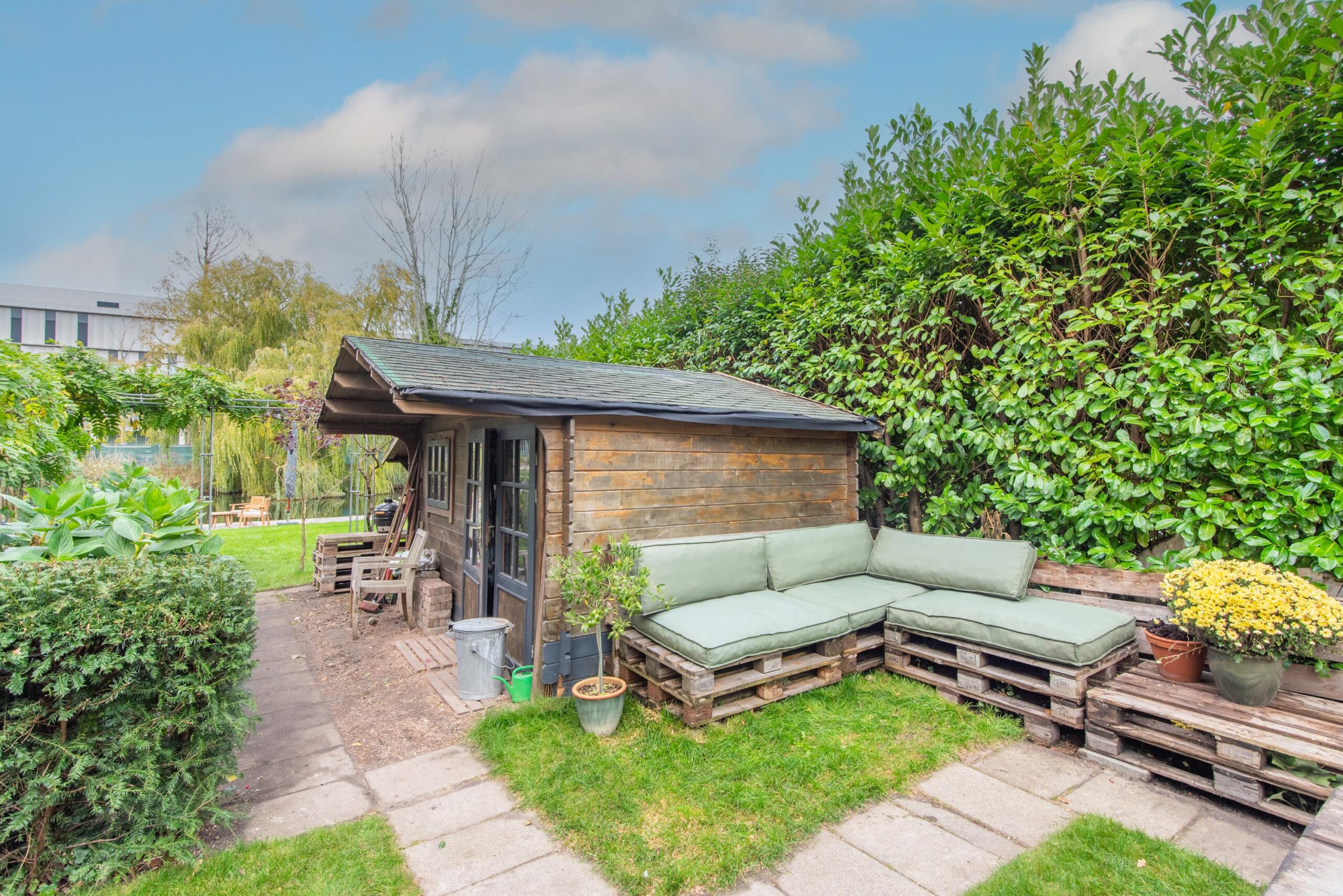 De achtertuin is echt uniek: bijna 35 meter diep, groen, mooi aangelegd en grenzend aan een brede waterpartij. Je hoort er vogels, voelt de rust en hebt volop privacy. Achterin staat nog een houten blokhut met elektra. Een zeldzaam stukje buitenleven, midden in de stad!