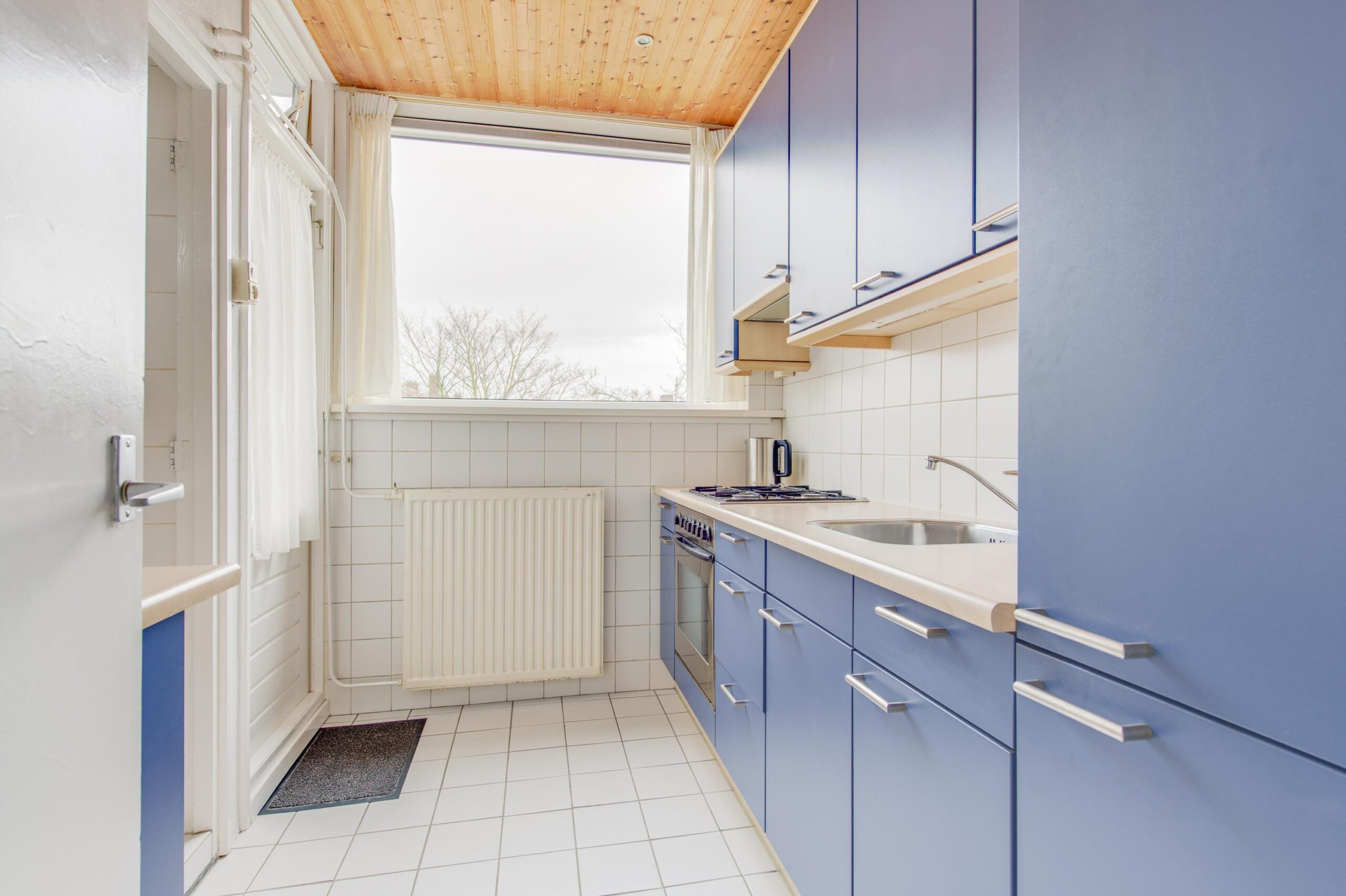 De ca 65 m² woonkamer is prettig licht dankzij de grote raampartijen en biedt voldoende ruimte voor een comfortabele zithoek en een gezellige eethoek. Vanuit de woonkamer heeft u toegang tot het balkon op het zuidwesten, waar u heerlijk van de zon kunt genieten. De keuken is praktisch ingericht en biedt toegang tot het tweede balkon op het noordoosten,ideaal voor een kop koffie in de ochtend of wat verkoeling op warme dagen.
