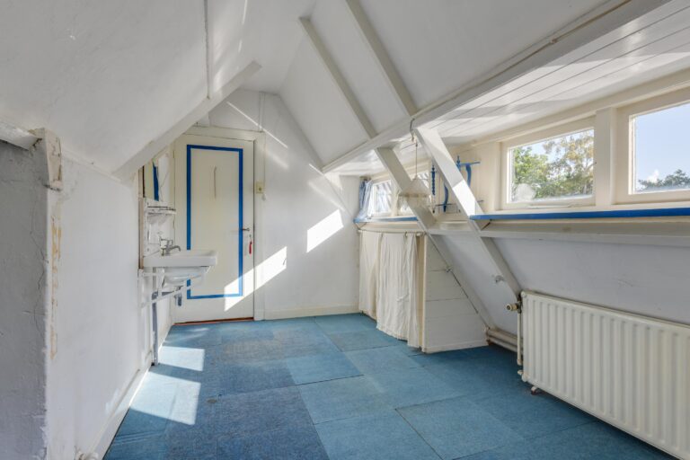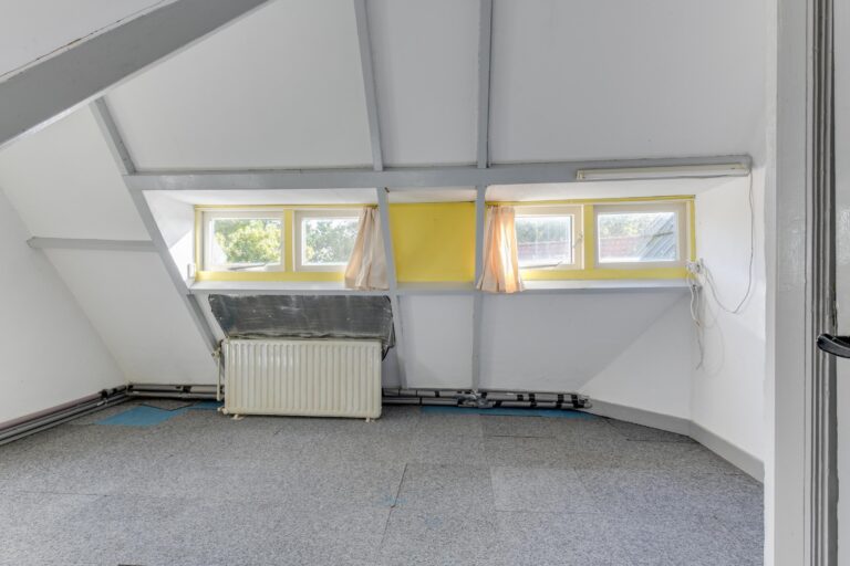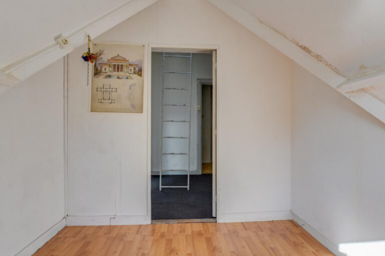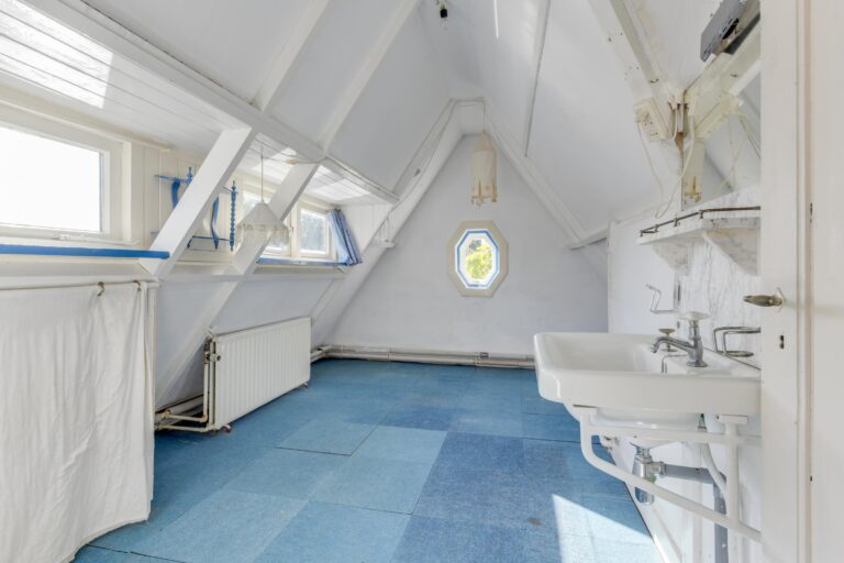 De bovenste verdieping biedt veel ruimte met vier slaapkamers (ca. 18, 16,5, 9,5 en 7 m²). Ook hier vindt u een royale overloop met wasbak en een badkamer met toilet en douche. Net als de andere verdiepingen kan ook deze etage een prachtige metamorfose ondergaan, met behoud van de bestaande charme.