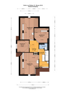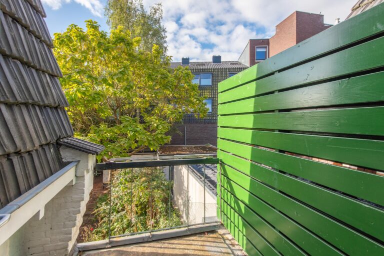 De eerste verdieping laat goed zien hoe bijzonder dit huis is ingedeeld. Hier vindt u een tweede woonkamer (ca. 17 m²) en een eetkamer (ca. 16 m²), waarbij openslaande deuren leiden naar een sfeervol balkon. Verder is er een tweede toilet, een extra keuken en twee slaapkamers (ca. 8,5 en 5,5 m²), beide voorzien van een eigen wastafel. Vanuit de keuken heeft u toegang tot een 2e balkon, welke heerlijk op het zuiden is gelegen. Bij deze woning heeft u dus met 2 balkons zelf de keuze of u in de zon of in de schaduw wilt genieten.