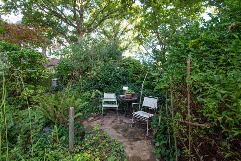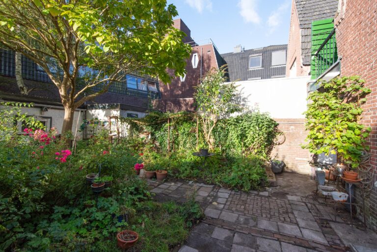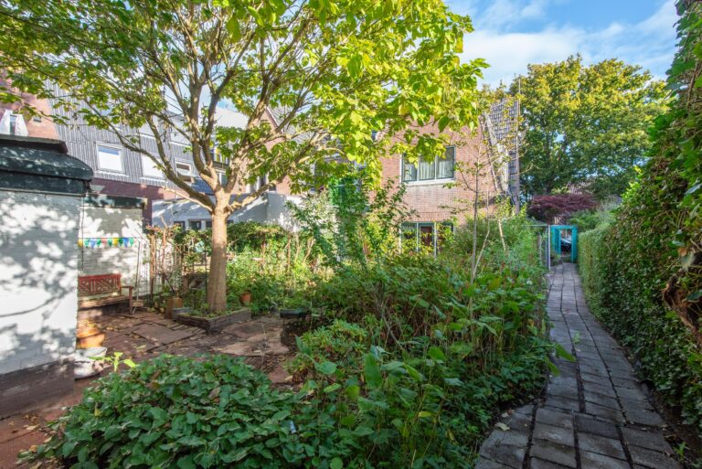 De groene tuin bij de woning biedt volop privacy en beschikt over twee bergingen. Er zijn verschillende zitjes waar u kunt genieten van de zon of juist lekker in de schaduw kunt ontspannen. Daarnaast biedt de tuin volop mogelijkheden om uw eigen ideeën tot leven te brengen, zoals een tuinhuis, een overkapping of een kas voor het kweken van eigen groenten en fruit.