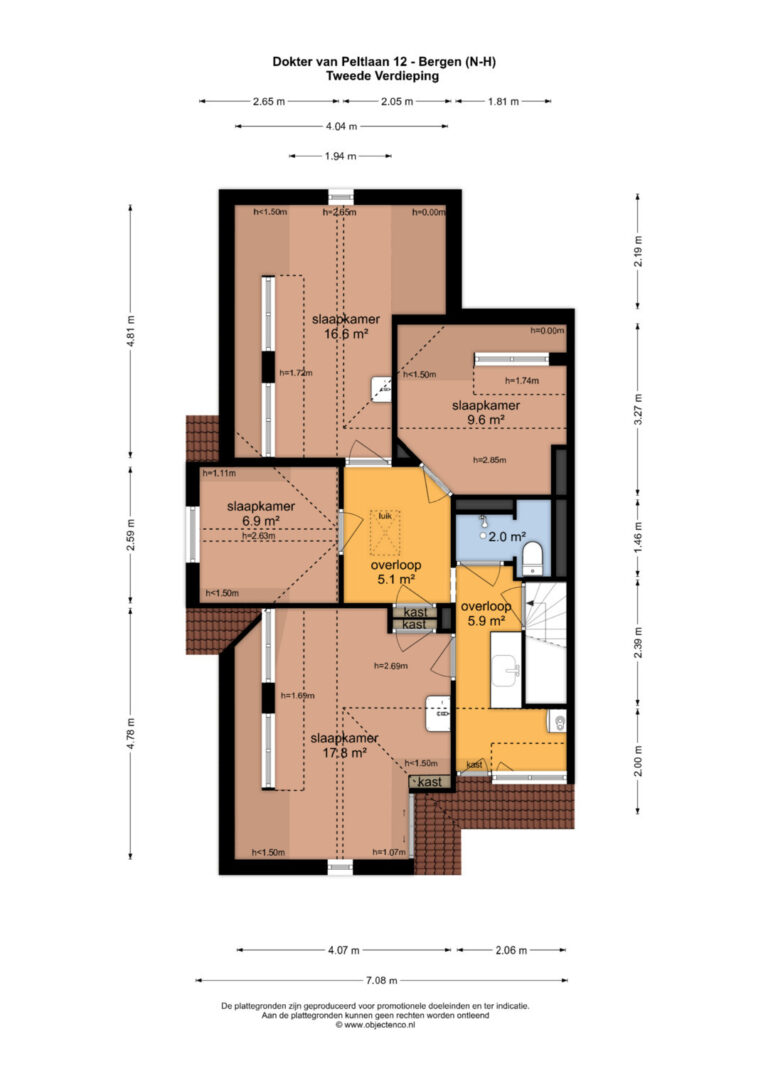 The top floor offers ample space with four bedrooms (approx. 18, 16.5, 9.5, and 7 m²). Here, too, you will find a spacious landing with a sink and a bathroom with a third toilet and shower. Like the other floors, this space could also undergo a beautiful makeover, while retaining its original charm.