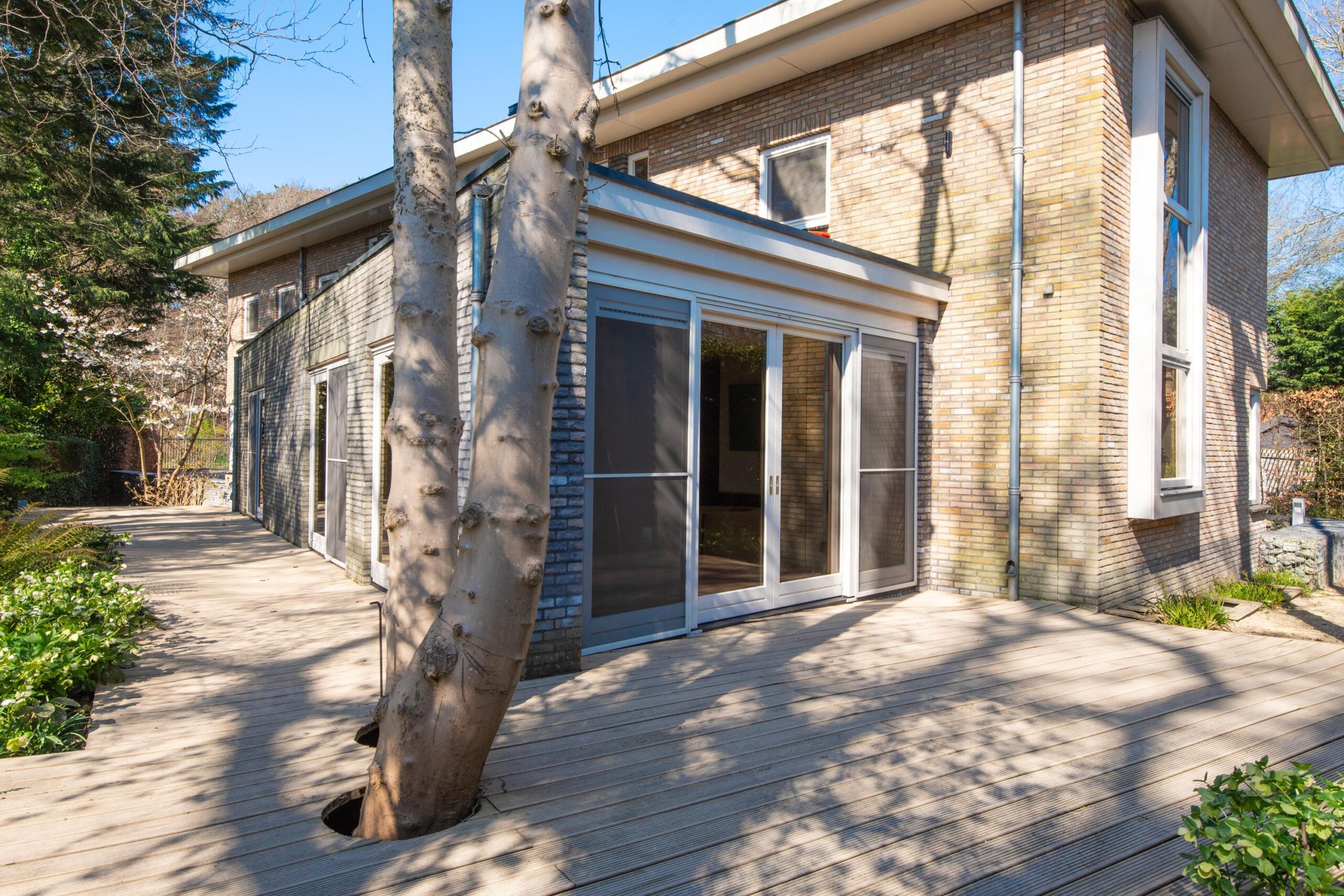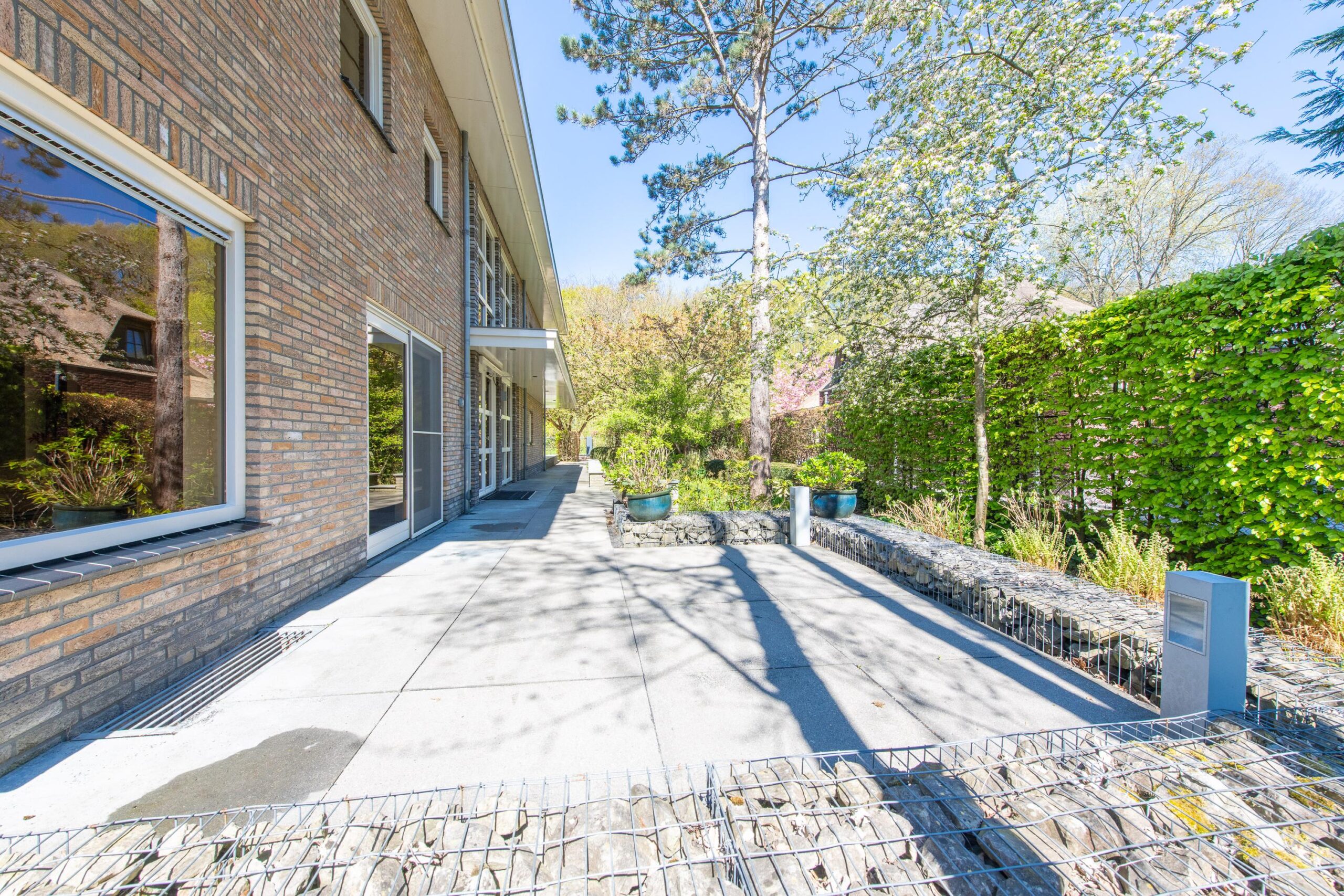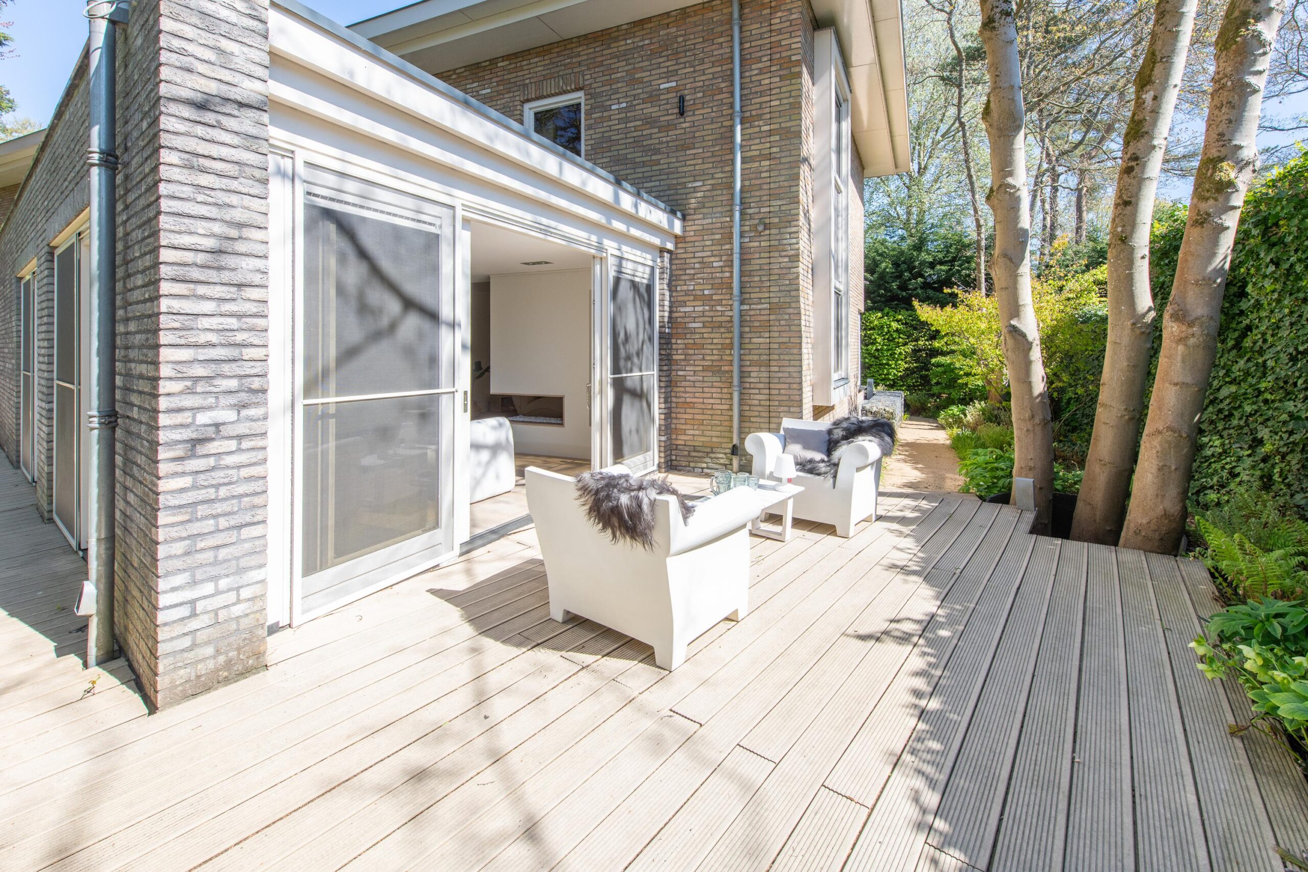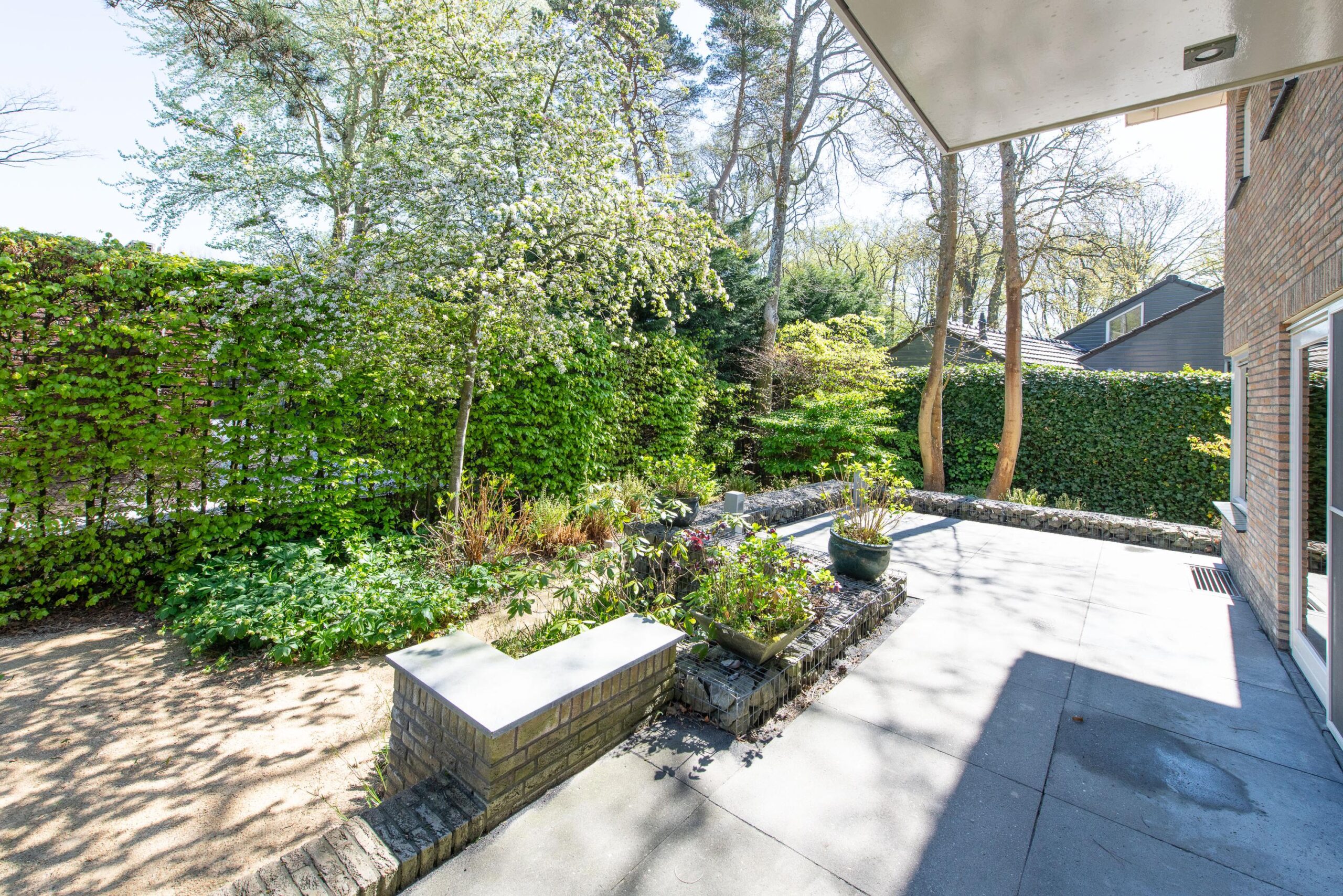 De zorgvuldig aangelegde tuin rondom de villa biedt optimale privacy en meerdere zon- en schaduwterrassen. Hier geniet u op elk moment van de dag van rust, natuur en groen. Of u nu een kop koffie drinkt onder de bomen, dineert met vrienden of simpelweg ontspant na een dag werken – dit is een buitenruimte die leeft.