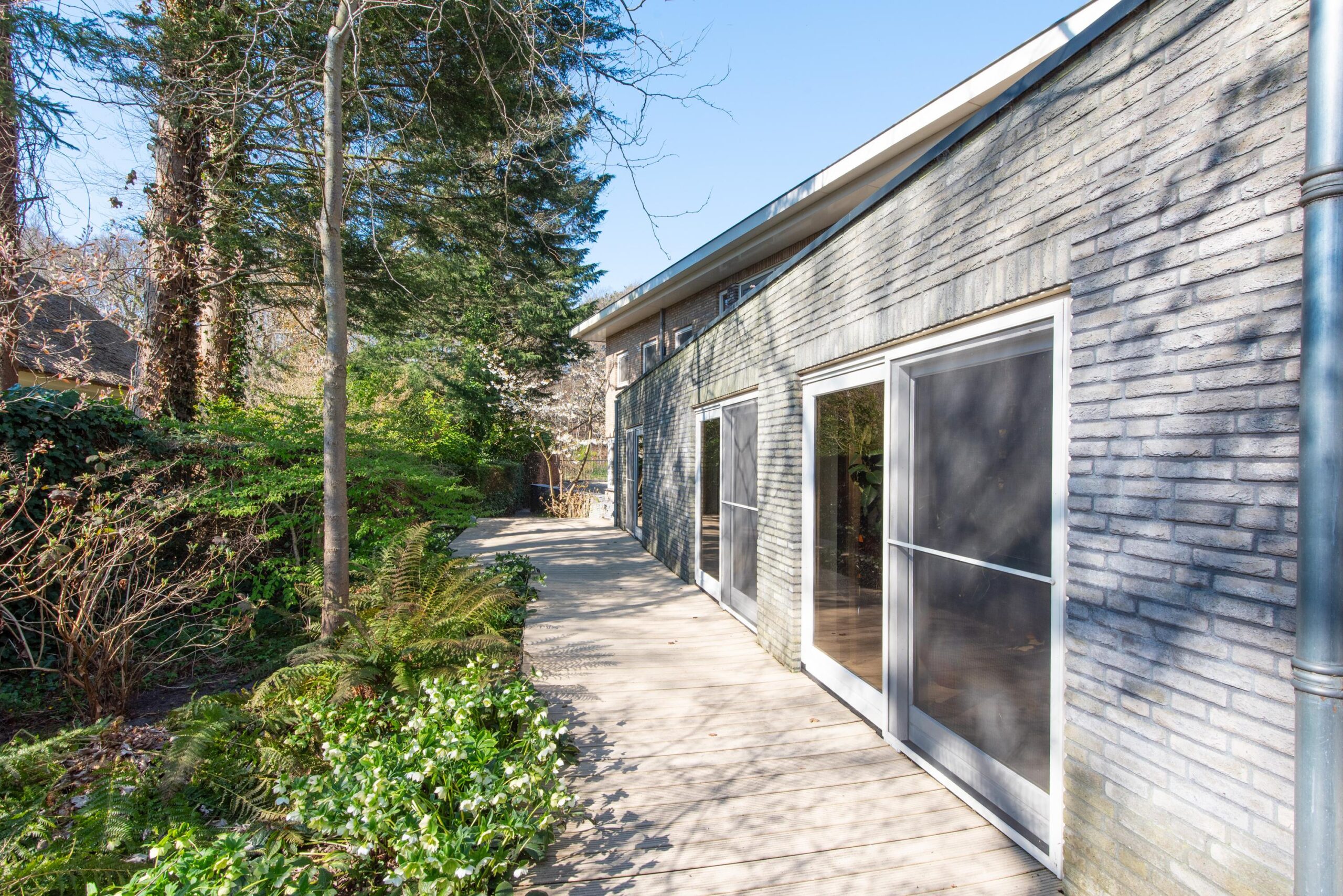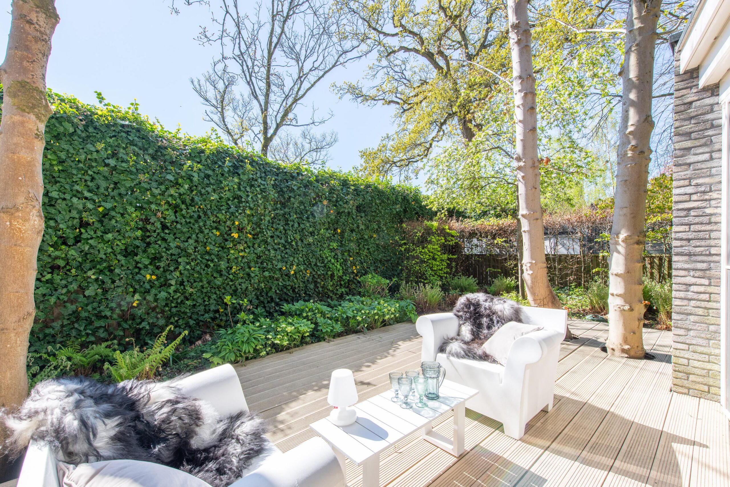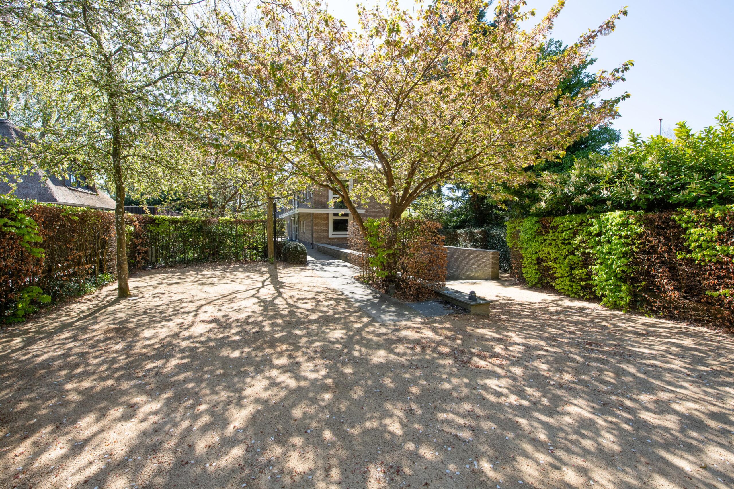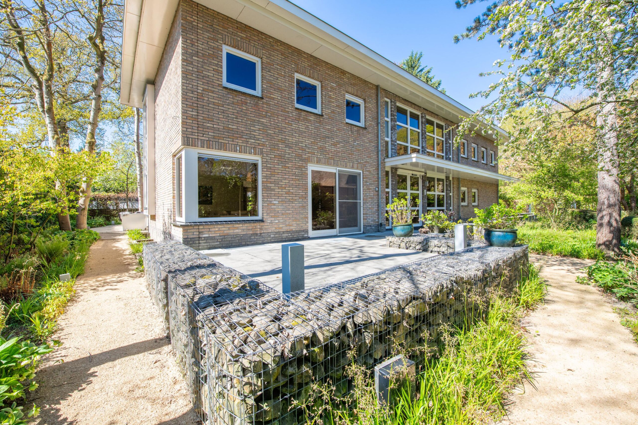 De zorgvuldig aangelegde tuin rondom de villa biedt optimale privacy en meerdere zon- en schaduwterrassen. Hier geniet u op elk moment van de dag van rust, natuur en groen. Of u nu een kop koffie drinkt onder de bomen, dineert met vrienden of simpelweg ontspant na een dag werken – dit is een buitenruimte die leeft.