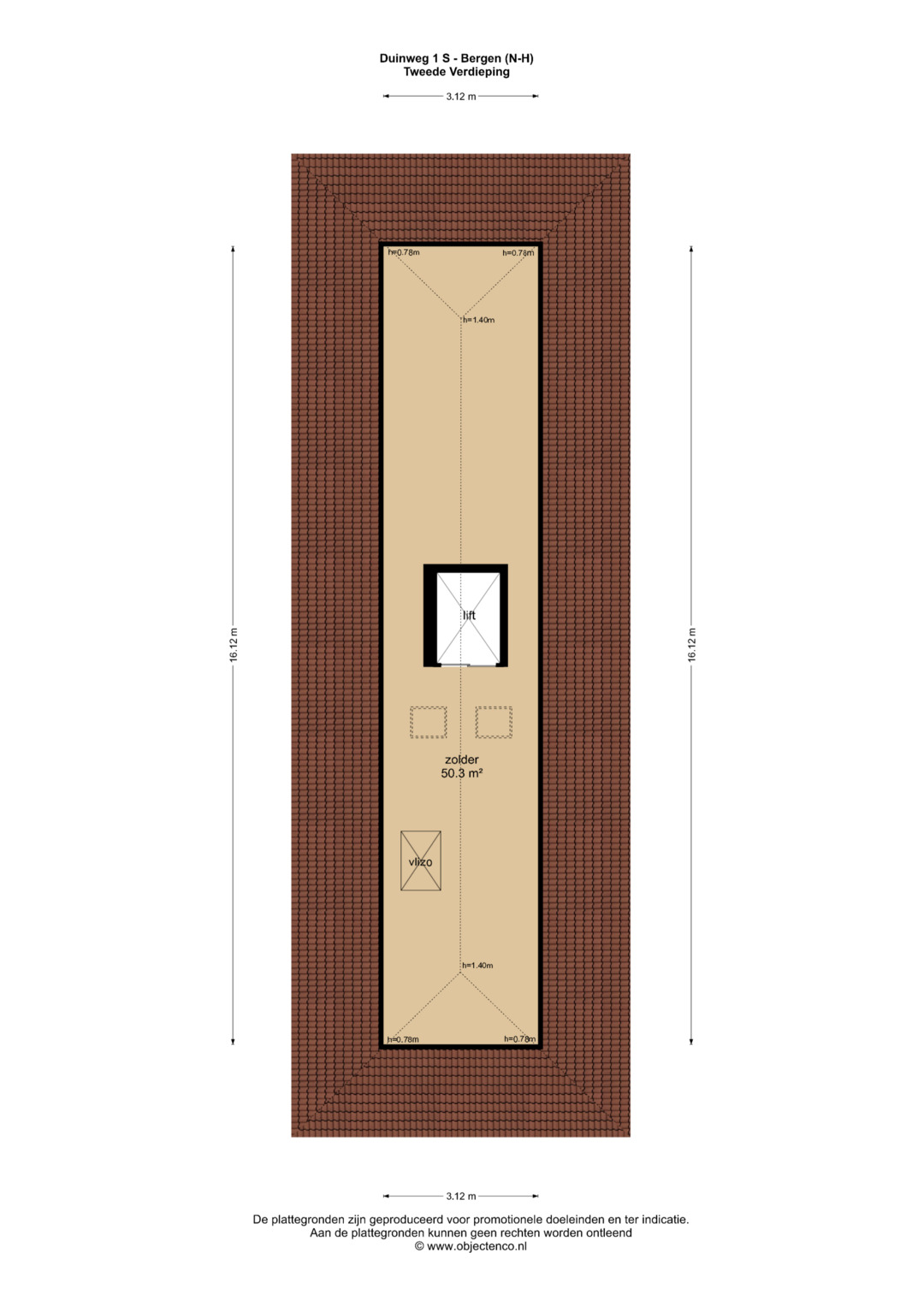 Via een vlizotrap bereikt u de royale zolderberging, die maar liefst ca. 50 m² groot is en een stahoogte heeft van 1,40 m. De zolder is voorzien van twee dakramen voor voldoende daglicht. Deze ruimte biedt veel opslagmogelijkheden.