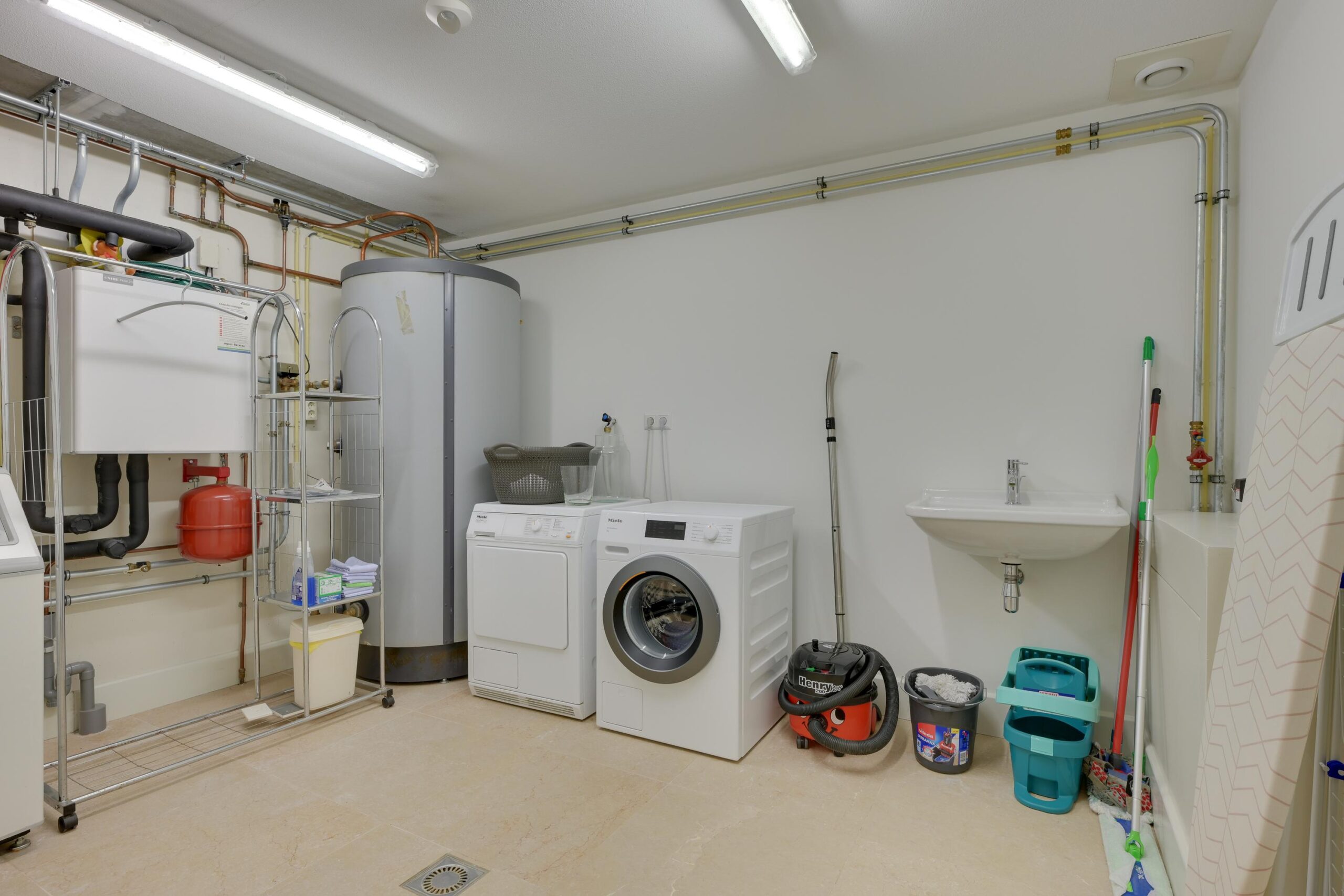 De gehele begane grond is voorzien van vloerverwarming én koeling, wat in combinatie met het aardwarmtesysteem zorgt voor een aangenaam en energiezuinig binnenklimaat (energielabel A+).