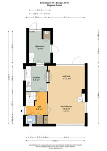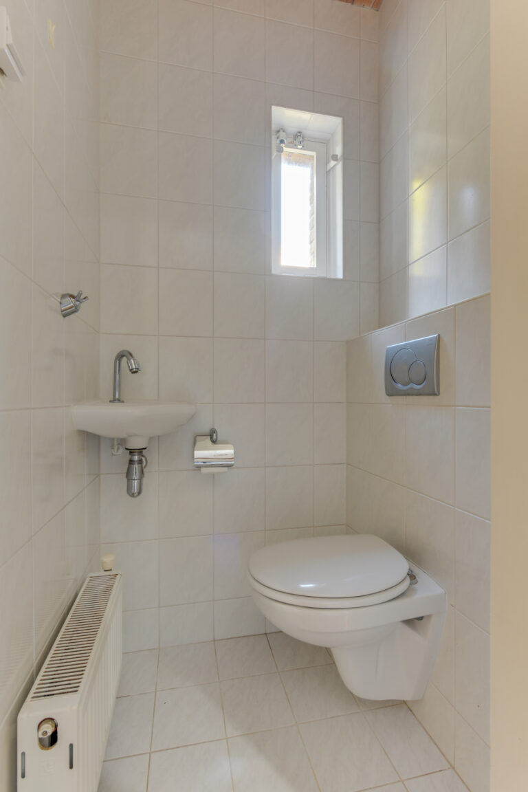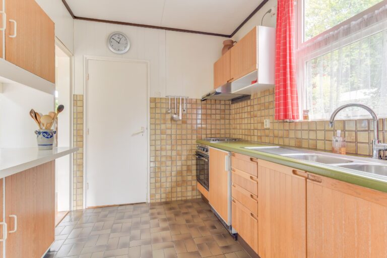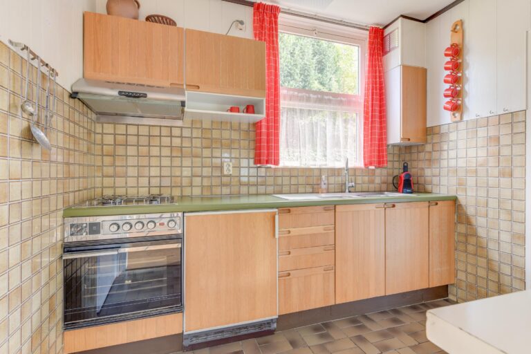 De halfopen keuken is ingericht met een 4-pits gaskookplaat, afzuigkap, oven en koelkast. Aansluitend treft u de ruime bijkeuken eveneens met toegang tot de tuin, met daarin een wastafel, aansluitingen voor wasmachine/droger en de CV-opstelling.