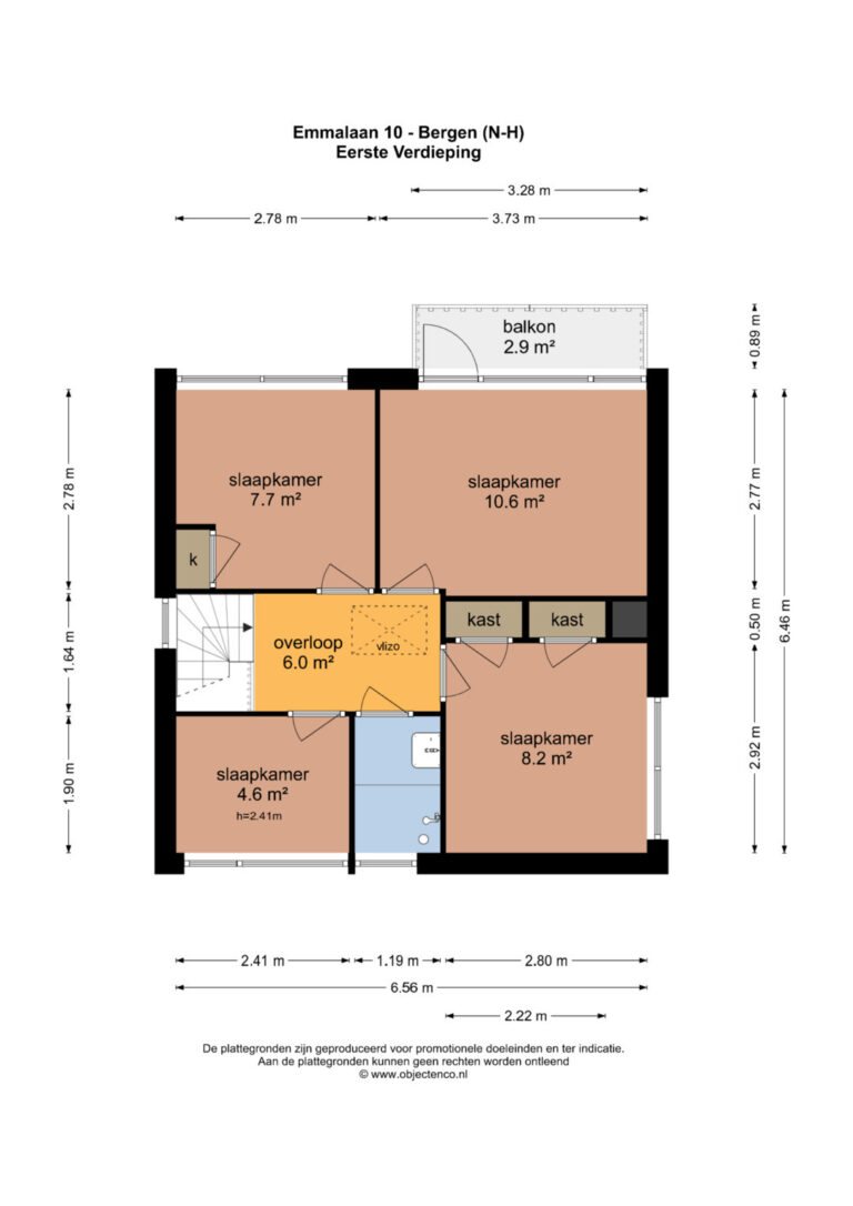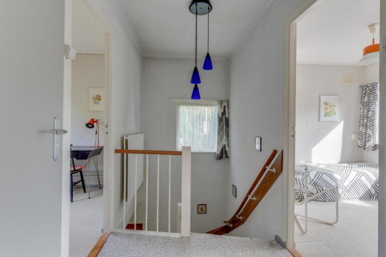 Overloop met vlizotrap naar de zolder. Er zijn vier slaapkamers: