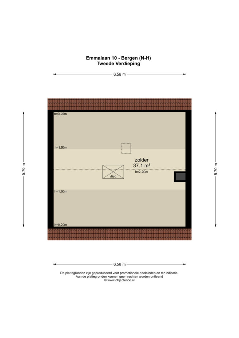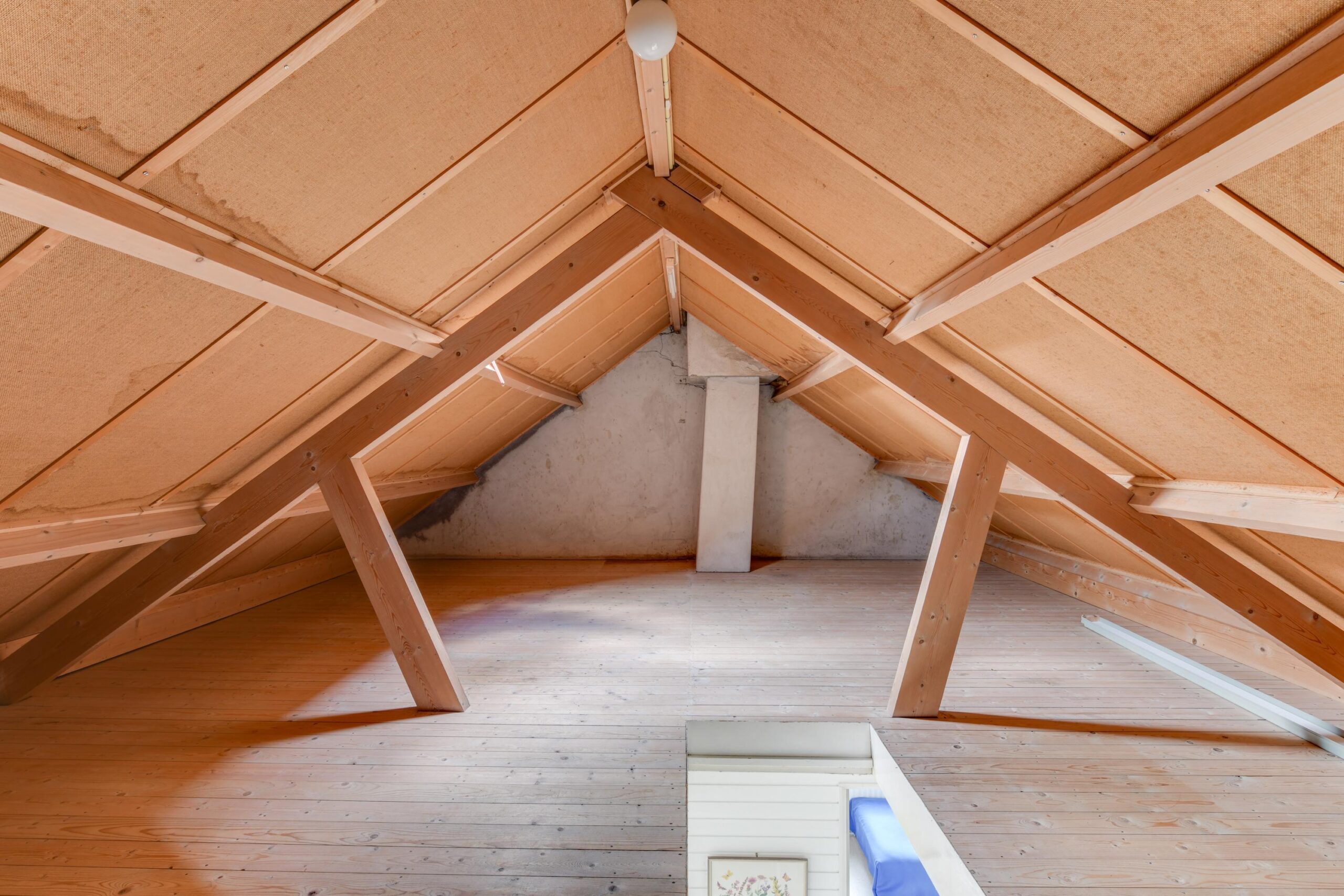 Bereikbaar via de vlizotrap, een praktische bergzolder die door een hoogte tot de nok van meer dan 2 meter goed te gebruiken is voor al uw seizoensspullen.