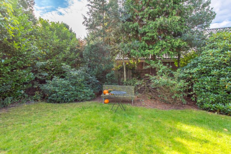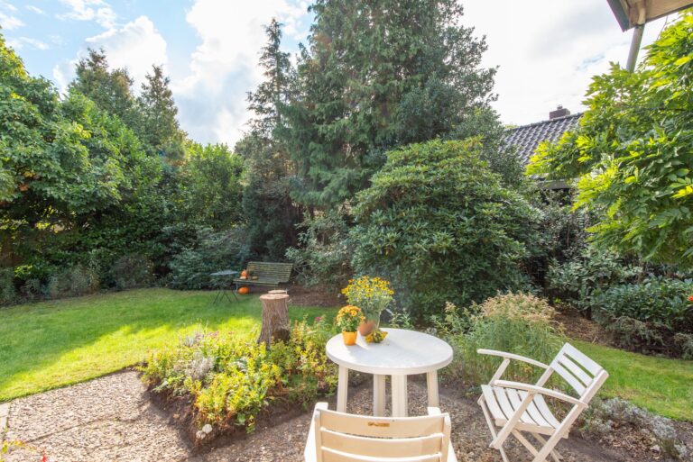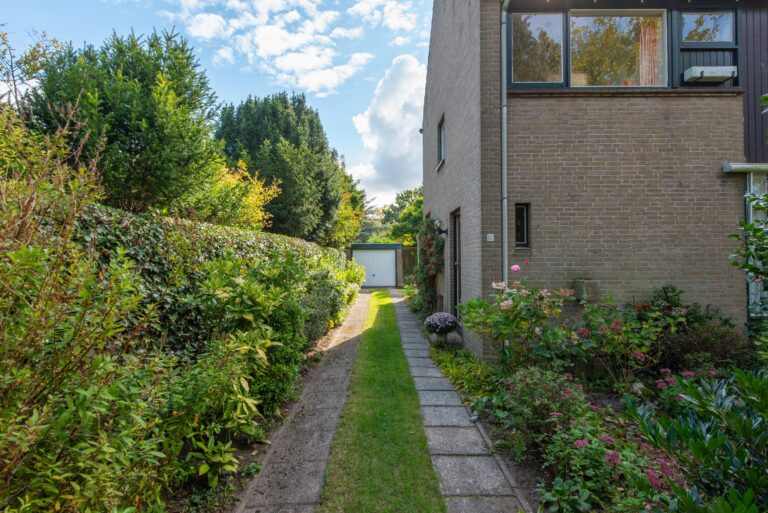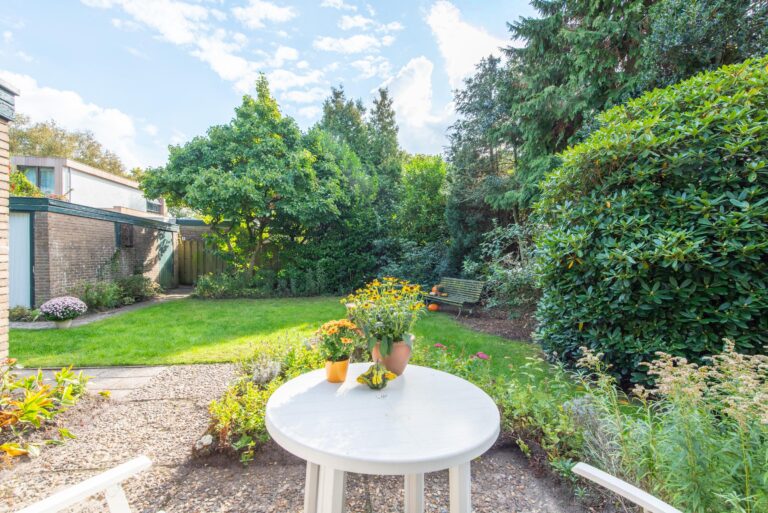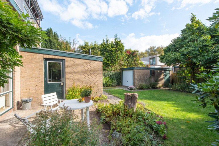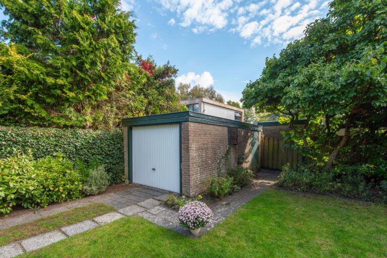 Een van de grote pluspunten van deze woning is de royale tuin rondom, met het grootste deel gelegen op het zuidoosten. Hier kunt u het hele jaar door, de gehele dag genieten van de zon, het groen en de rust. Aan de achterzijde van het perceel ligt de garage, bereikbaar via een oprit.