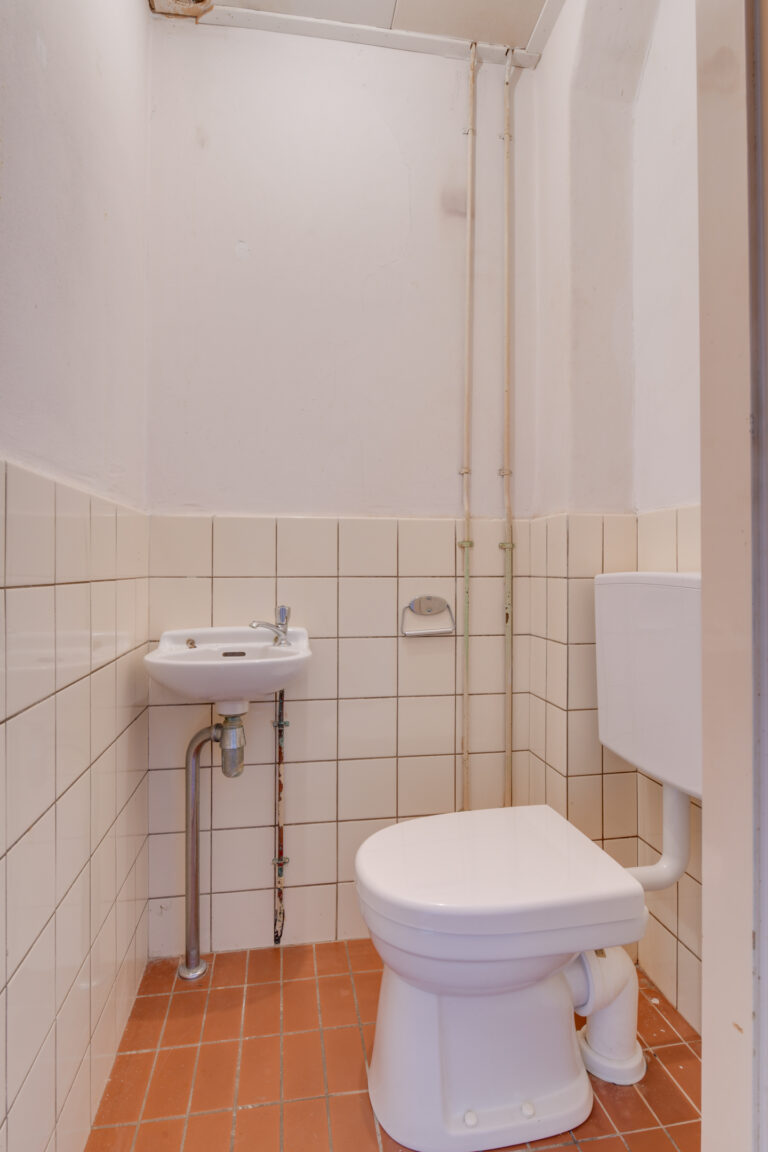 U stapt binnen in de hal ca. 5 m² voorzien van een toilet, meterkast en toegang naar de woonkamer.