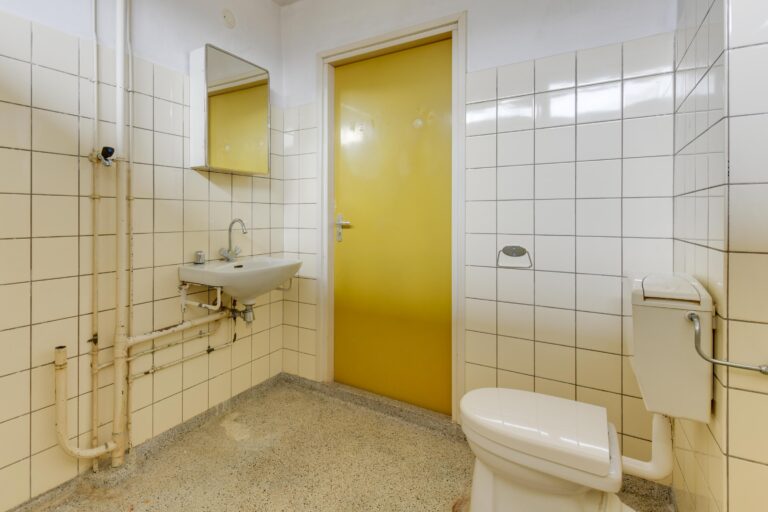 De badkamer ca. 5 m² is voorzien van een douche, wastafel, toilet en wasmachine- drogeraansluiting.