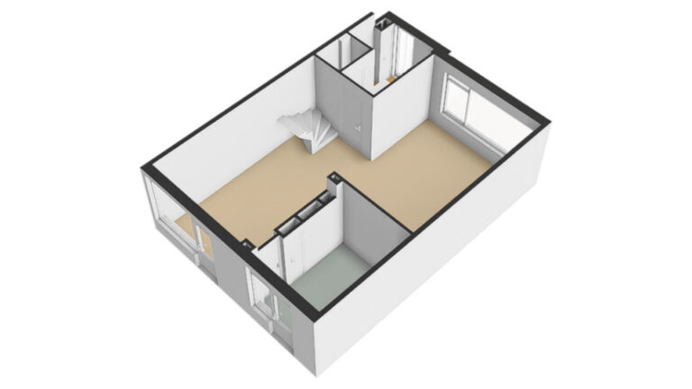 De woonkamer is ca. 35 m² groot en voorzien van een zitgedeelte en eethoek. Vanuit de woonkamer kunt u de trap op naar de 1e verdieping.
