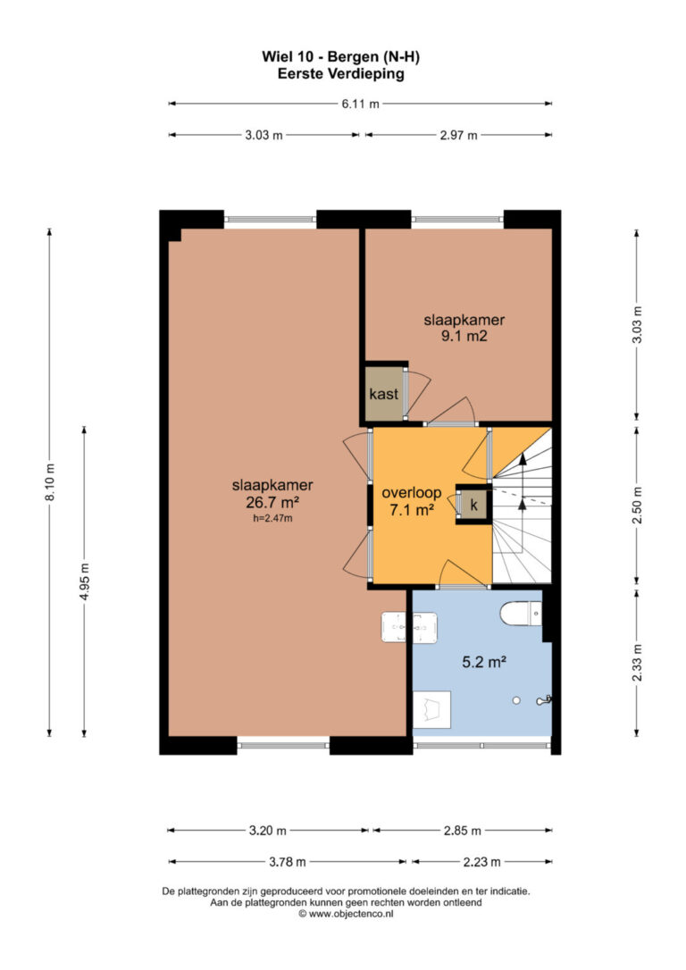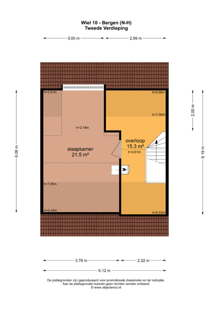 Vanuit de overloop van ca. 7 m² heeft u toegang tot 2 slaapkamers.