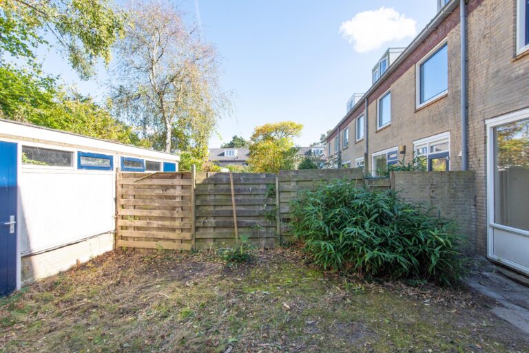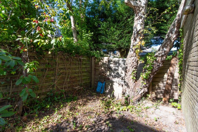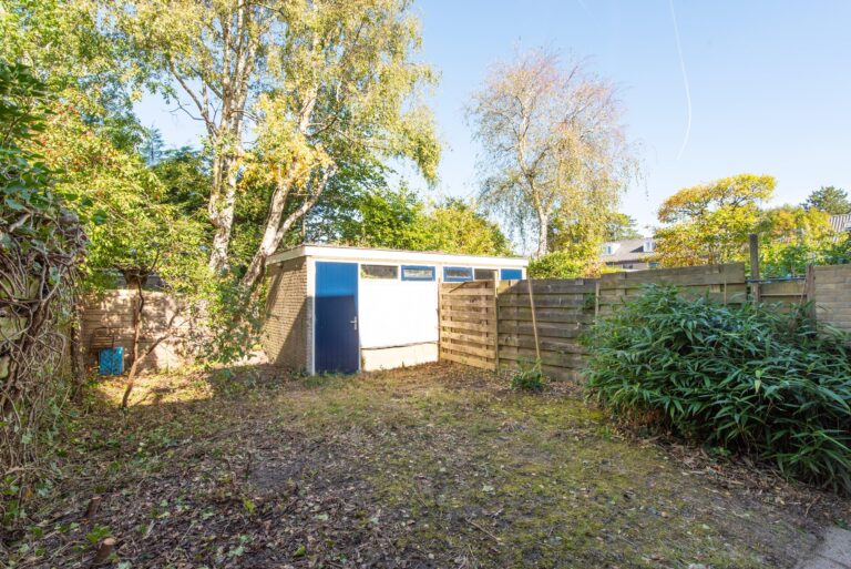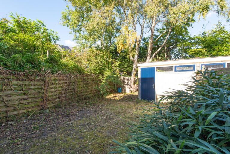 De privacyvolle tuin is gelegen op het noorden en biedt volop mogelijkheden om in alle rust van het buitenleven te genieten. In de zomer creëert u hier eenvoudig een groene, koele plek om te ontspannen. De tuin is bovendien voorzien van een praktische stenen berging en beschikt over een achterom.