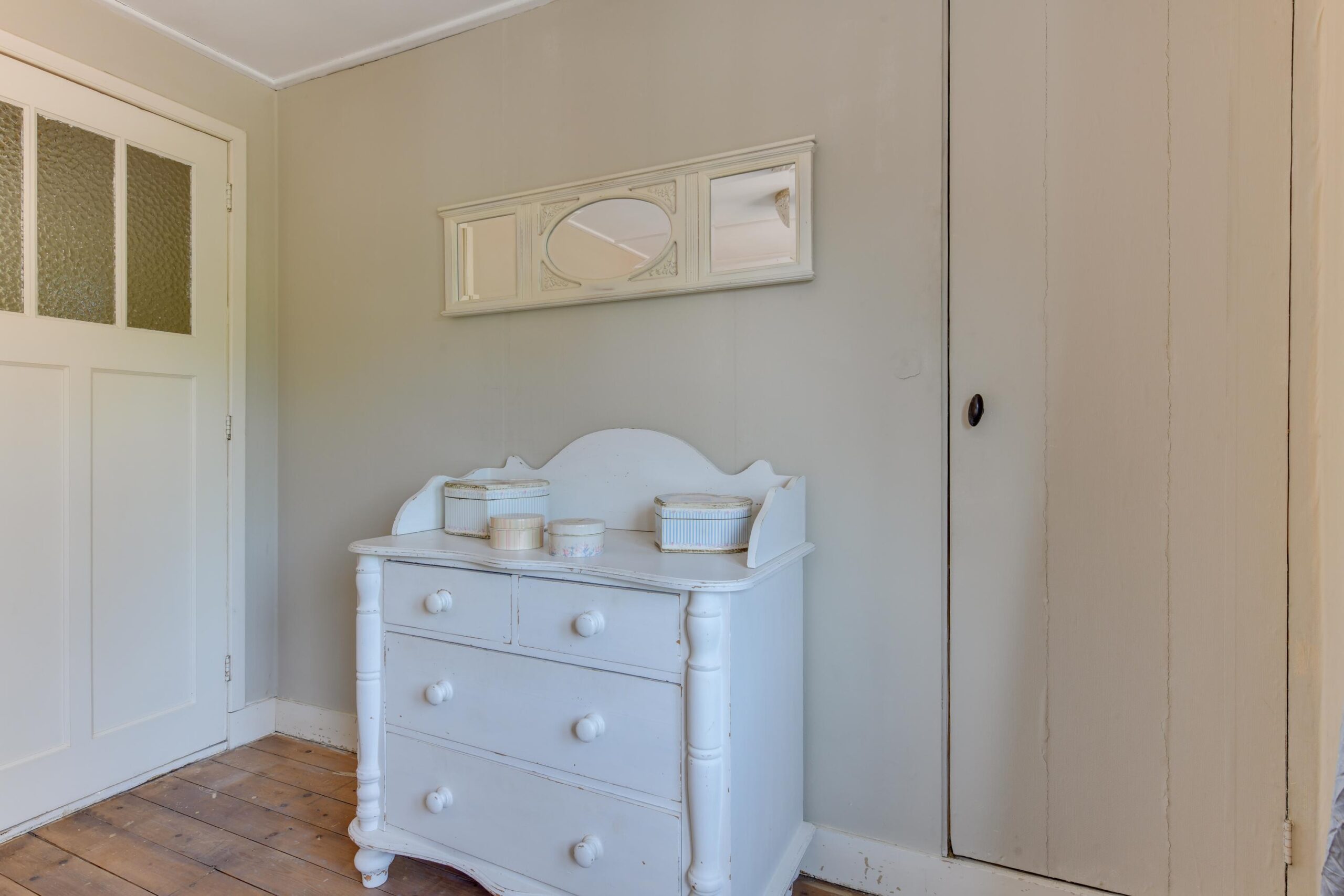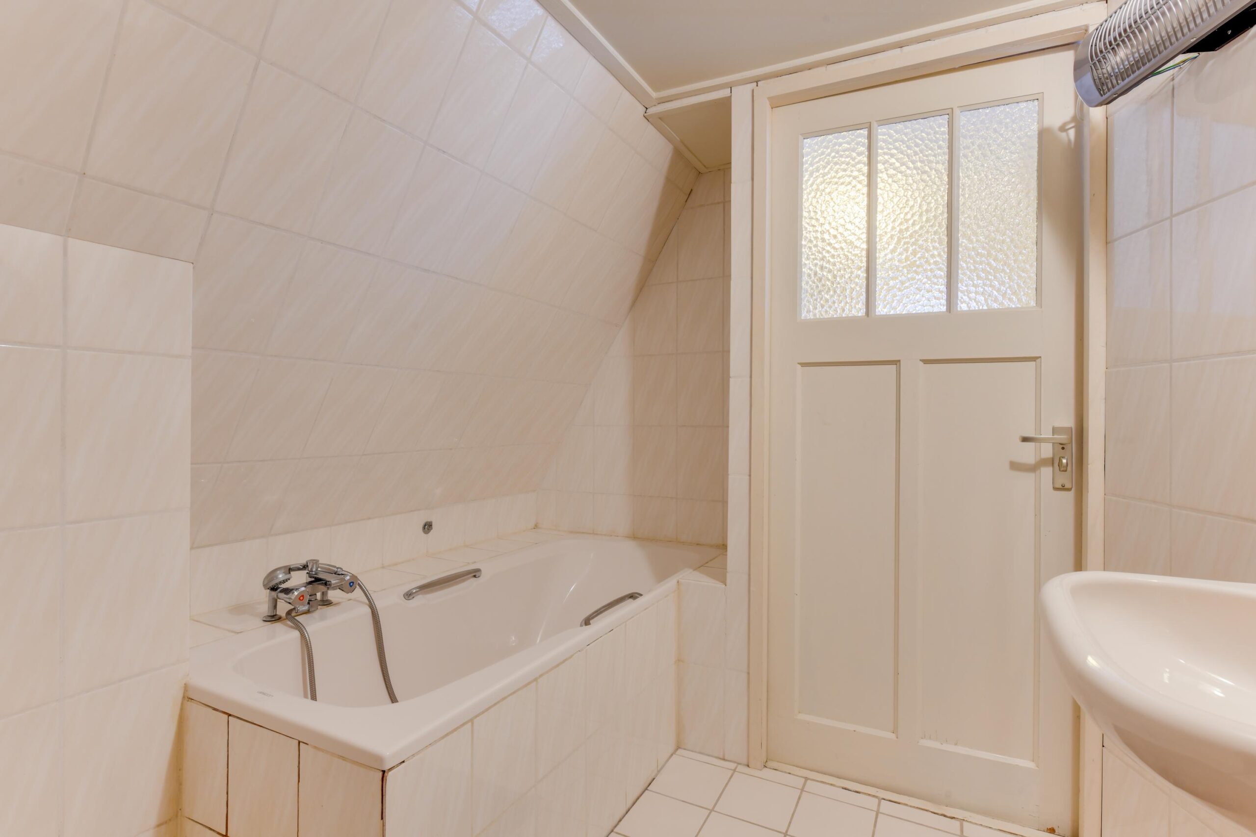 De eerste verdieping ademt nog de originele stijl en biedt volop mogelijkheden. Er zijn twee royale slaapkamers (ca. 12 m² en 13 m²) en veel praktische bergruimte. Deze verdieping kan eenvoudig opnieuw worden ingedeeld, waardoor er zelfs drie slaapkamers gerealiseerd kunnen worden. De nette, wit betegelde badkamer is uitgerust met een ligbad, toilet, douche en wastafel.