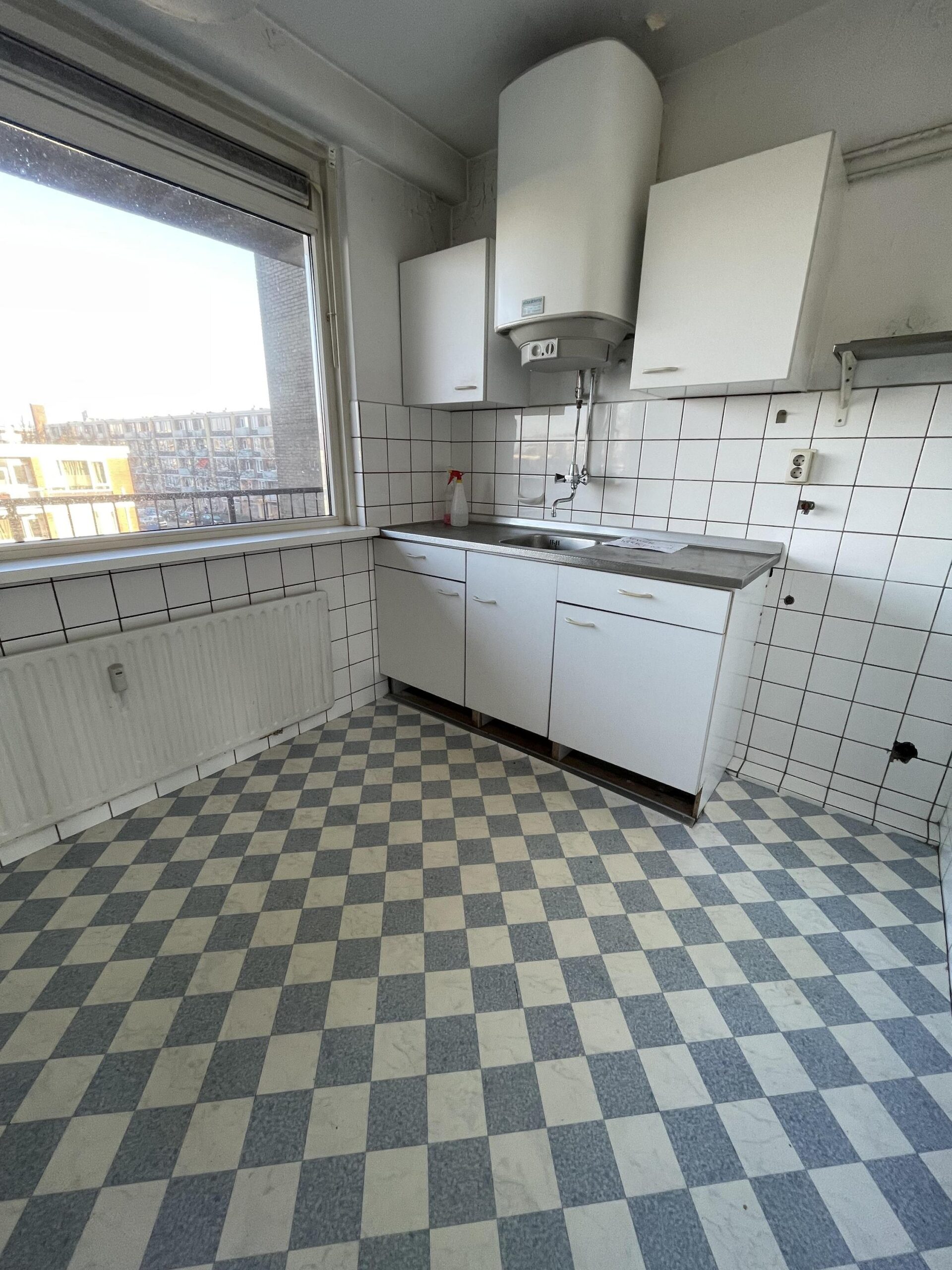 Entree met meterkast en hal. De lichte woonkamer biedt uitzicht over de omgeving en geeft mogelijkheden om een extra (derde) slaapkamer te realiseren. Vanuit de eerste slaapkamer is het zonnige balkon bereikbaar. De master bedroom is ruim van formaat. De gesloten keuken, badkamer en toilet zijn functioneel maar dienen gerenoveerd te worden. De badkamer is momenteel voorzien van een wastafelmeubel, ligbad, evenals aansluitingen voor wasmachine en droger. Het toilet met fonteintje bevindt zich in een aparte ruimte.