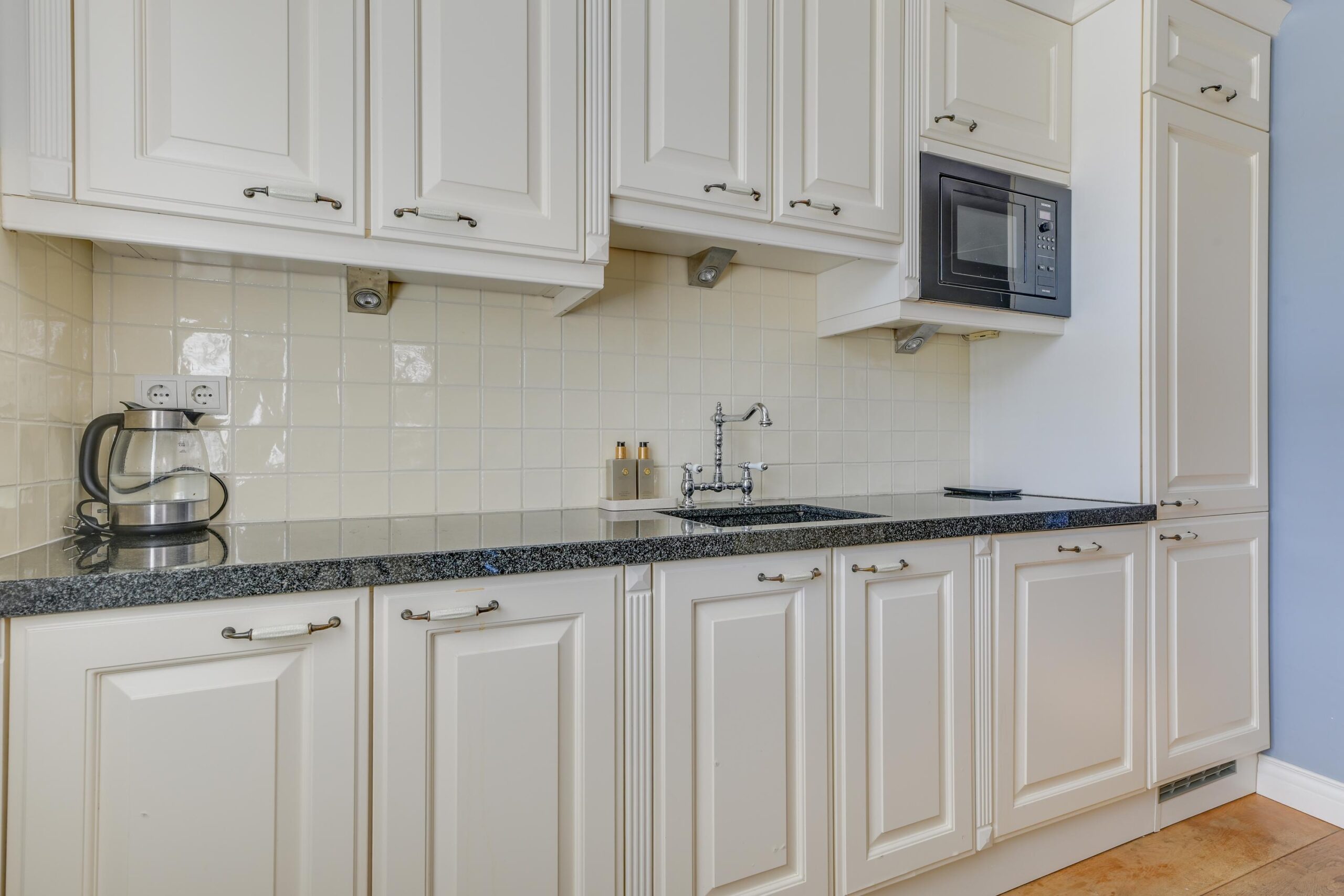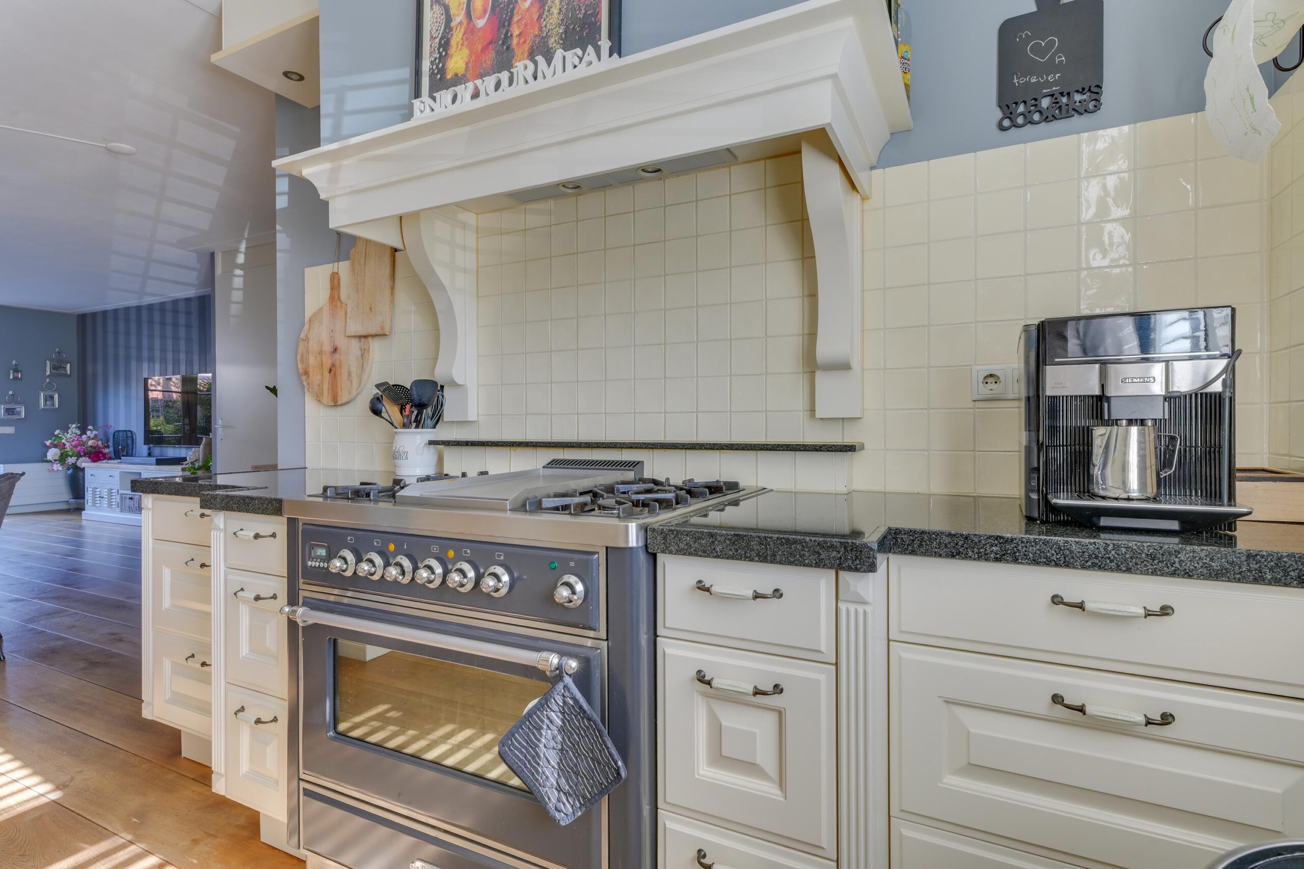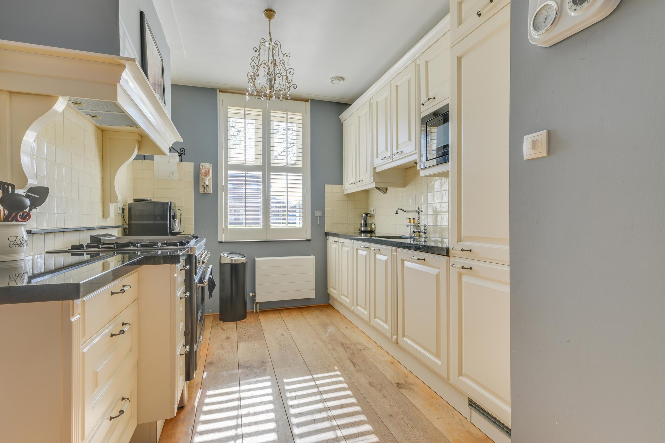 Bij binnenkomst in de hal van ca. 6 m², met trap en toilet, wordt u direct verwelkomd door de authentieke, sfeervolle tegelvloer en wanden met lambrisering. In de woonkamer wordt deze sfeer doorgetrokken dankzij de prachtige eikenhouten vloer. De tuingerichte woonkamer van maar liefst ca. 48 m² biedt alle ruimte om er uw eigen oase van te maken. De ramen met stijlen geven de woonkamer een extra authentieke uitstraling. Via de woonkamer bereikt u de open keuken in landelijke stijl. De keuken is voorzien van een Boretti gasstel met afzuigkap en oven. Daarnaast beschikt de keuken over diverse inbouw apparatuur waaronder een inbouwmagnetron, een koel-/vriescombinatie en een vaatwasser.