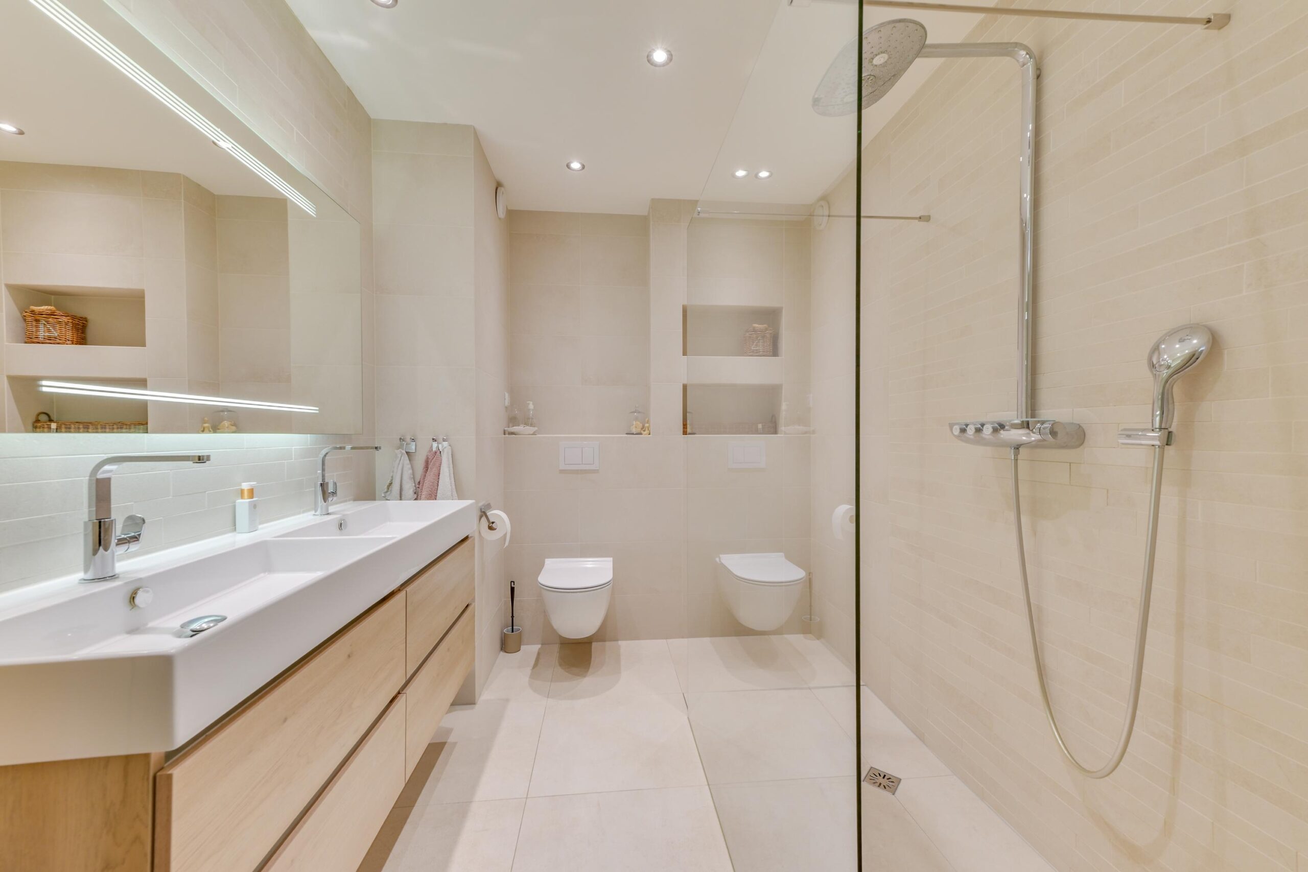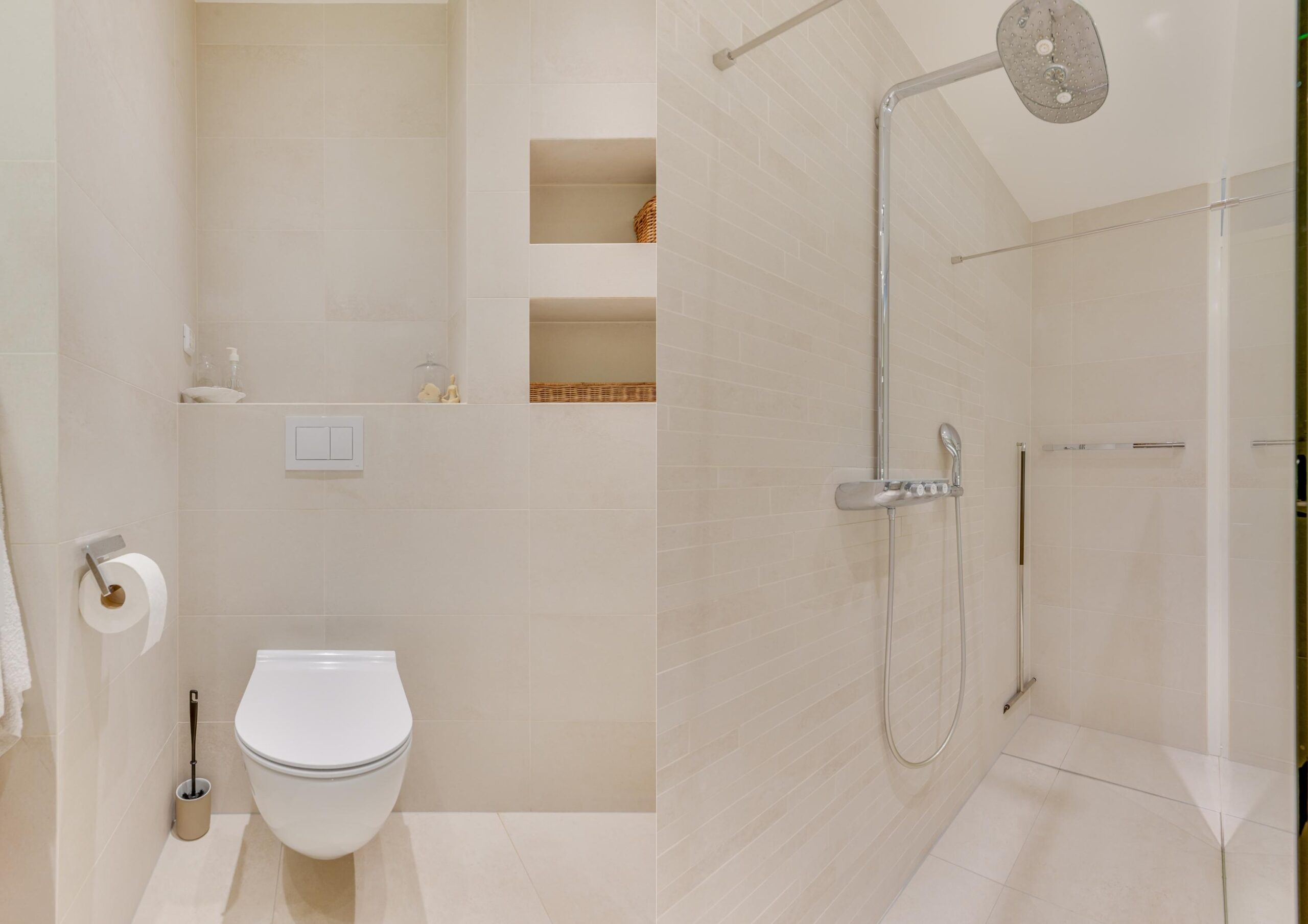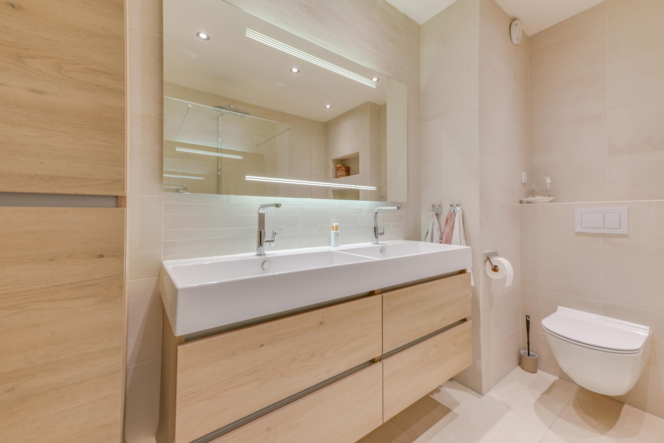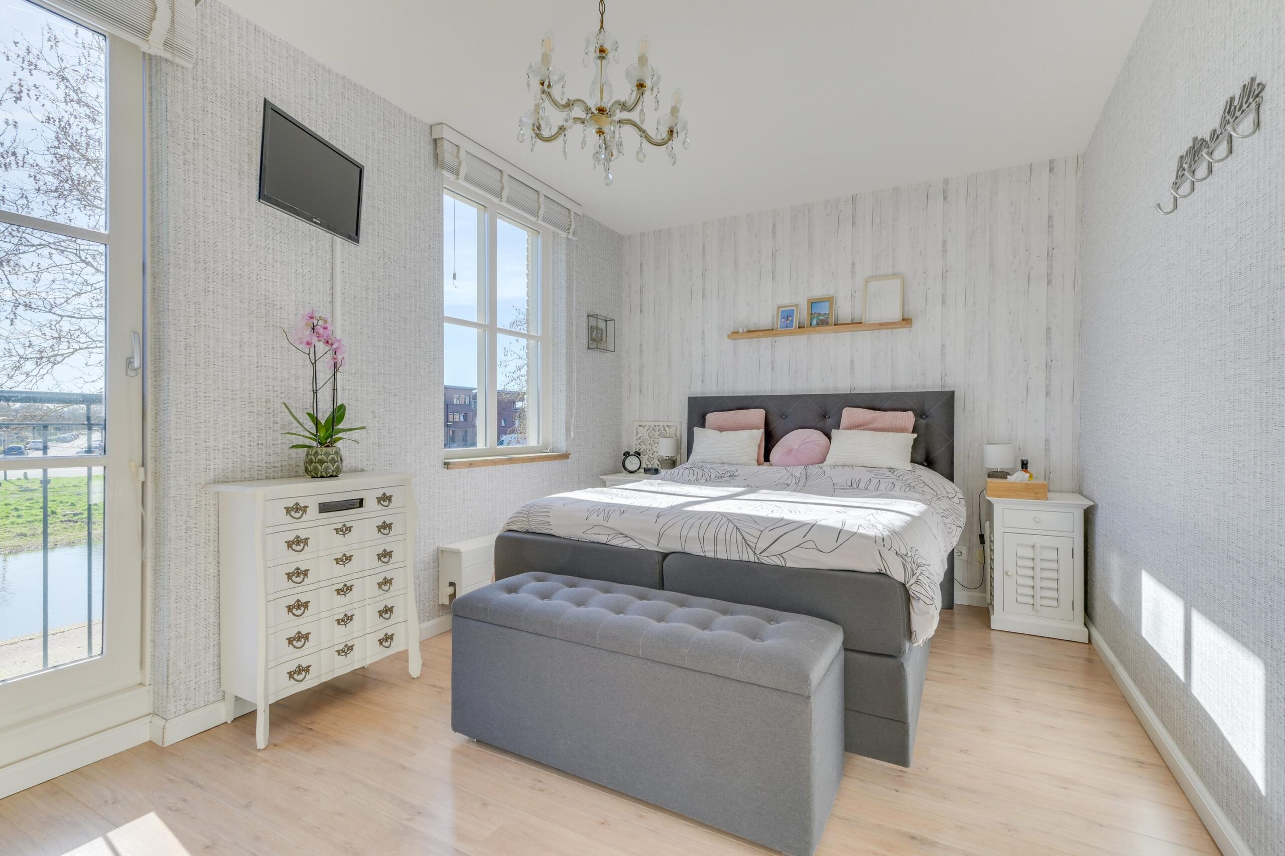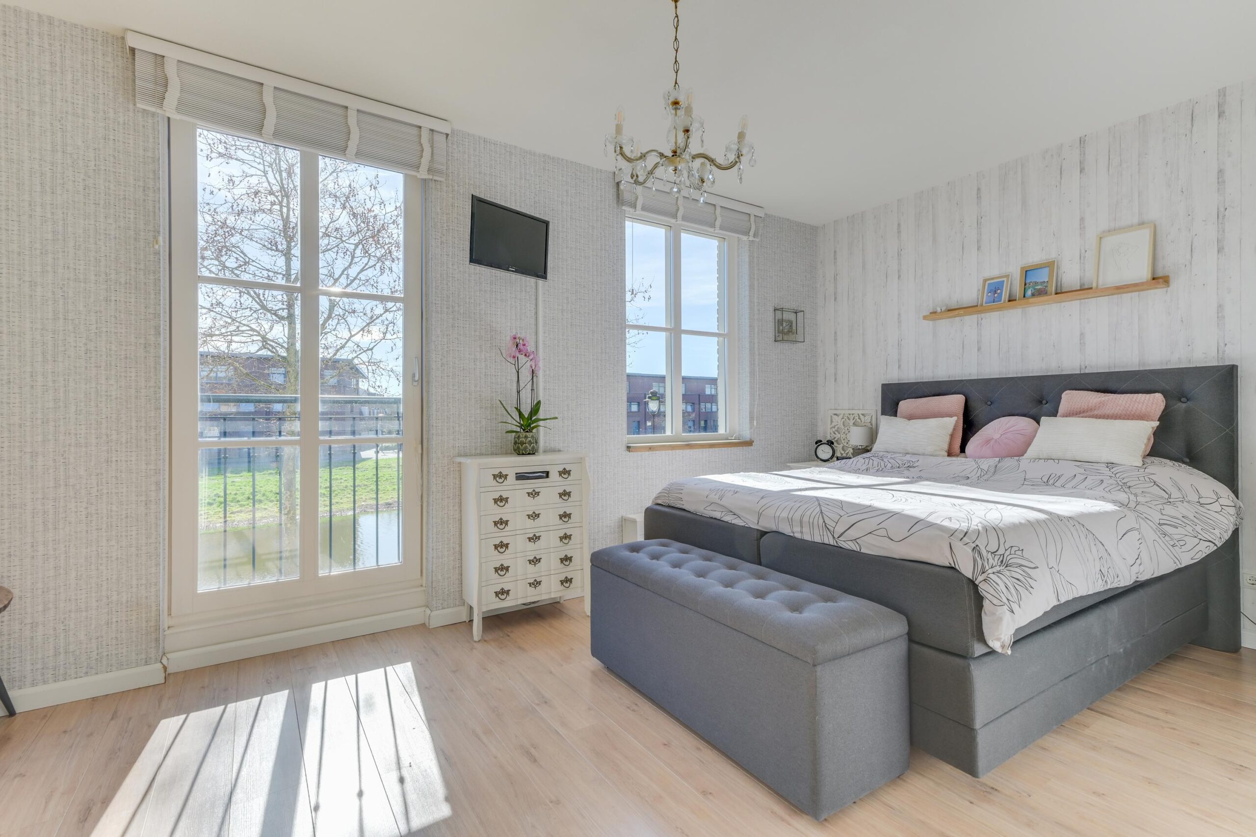 Via de overloop bereikt u twee slaapkamers van ca. 18 m² en ca. 16 m². De slaapkamer aan het water beschikt over een lang raam met Frans balkon, waardoor er extra veel daglicht binnenvalt en u direct zicht over het water heeft. Beide slaapkamers en de overloop zijn voorzien van een nette laminaatvloer. Ook de badkamer van ca. 6 m² is keurig afgewerkt. Deze is voorzien van vloerverwarming, een tweede toilet, een dubbel wastafelmeubel met spiegel en een ruime inloopdouche.