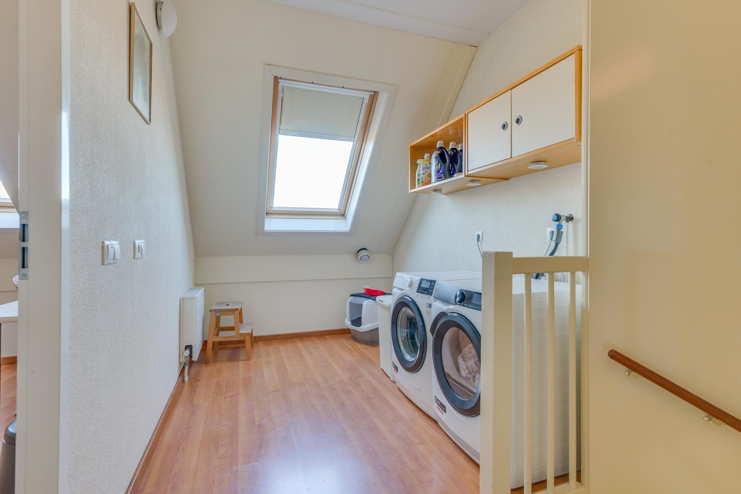 Via een vaste trap komt u op de tweede verdieping, waar zich nog twee slaapkamers bevinden van ca. 22 m² en ca. 14 m². De grootste slaapkamer is voorzien van een dakkapel met stijlraam en de andere slaapkamer beschikt over een Velux kanteldakraam met schuifgordijn. Op deze verdieping is tevens ruimte voor een wasmachine en droger.