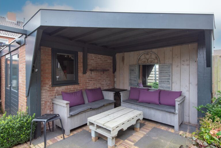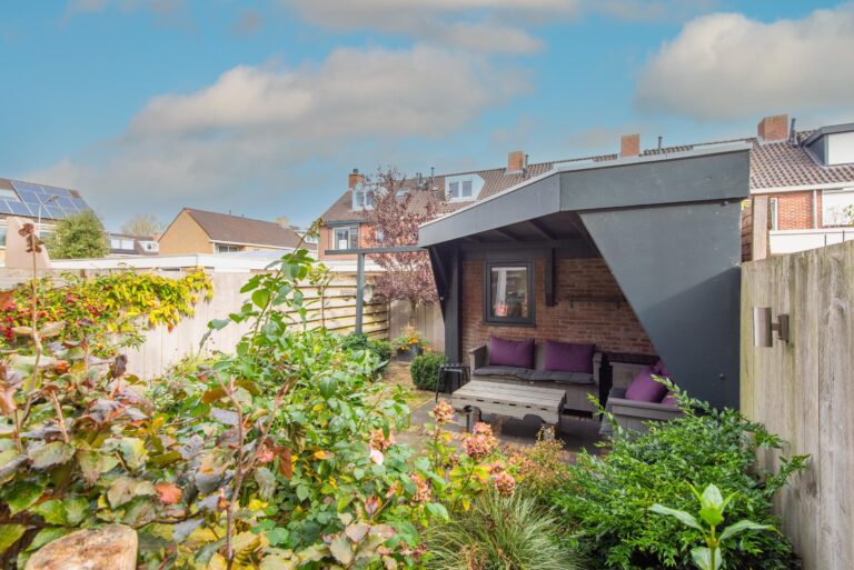 De voor- en achtertuin zijn keurig aangelegd. In de achtertuin vind je een gezellige overkapping (ca. 7 m²) waar je tot laat kunt genieten van zwoele zomeravonden, een ruime berging (ca. 9 m²) en een elektrisch zonnescherm voor de warme dagen.