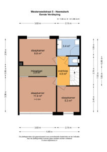 Via de trap kom je op de overloop die toegang biedt tot drie slaapkamers (ca. 12 m², 9 m² en 5 m²), allemaal voorzien van laminaat. De grootste slaapkamer beschikt over een inloopkast van circa 4 m²! De moderne badkamer is uitgerust met een douchehoek, wastafelmeubel en designradiator. Daarnaast is er een separaat tweede toilet aanwezig op de overloop.