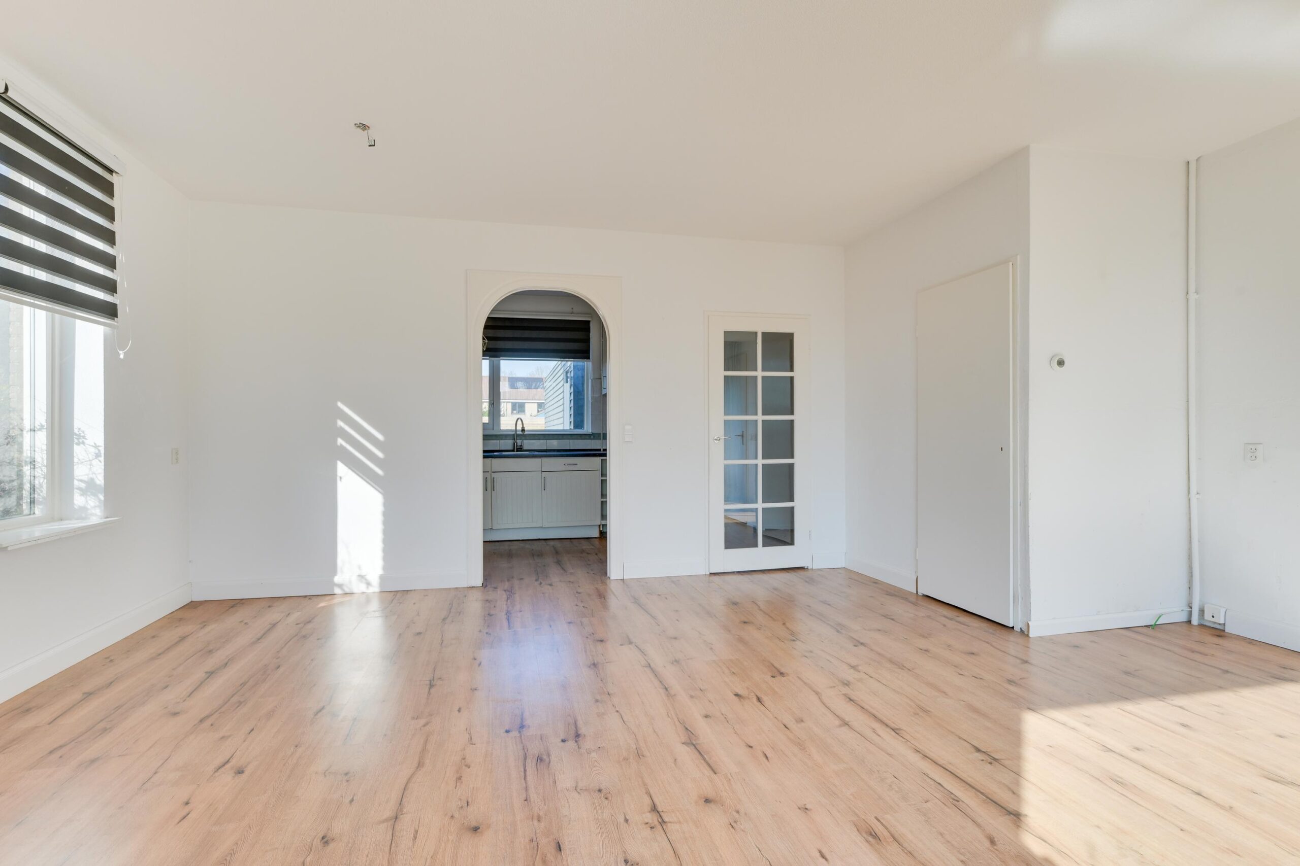 De tuingerichte woonkamer van ca. 29 m² is breed opgezet en vangt veel daglicht dankzij de brede raampartijen. De tuin op het zuidoosten is via een schuifpui te bereiken.