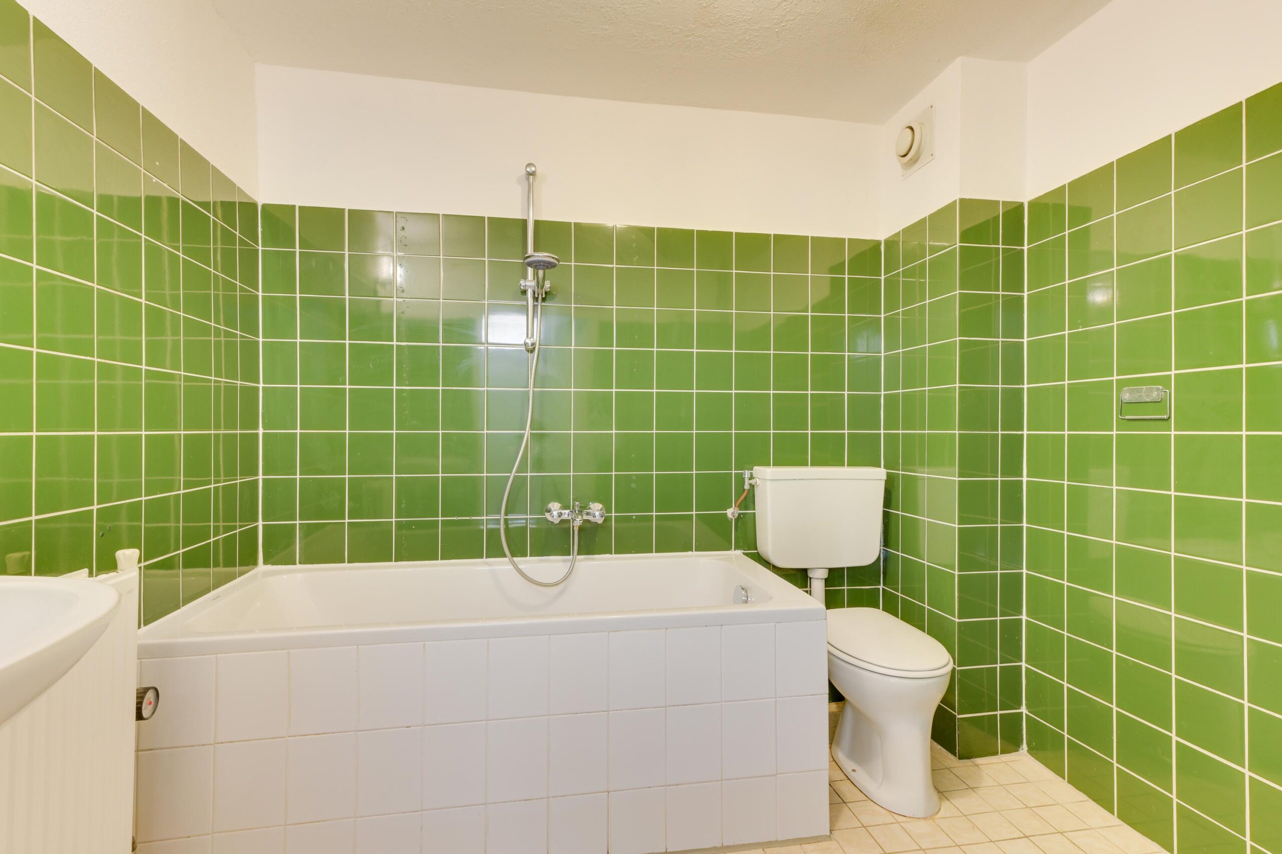 De badkamer van ca. 5,5 m² is voorzien van een ligbad, toilet en wastafel.
