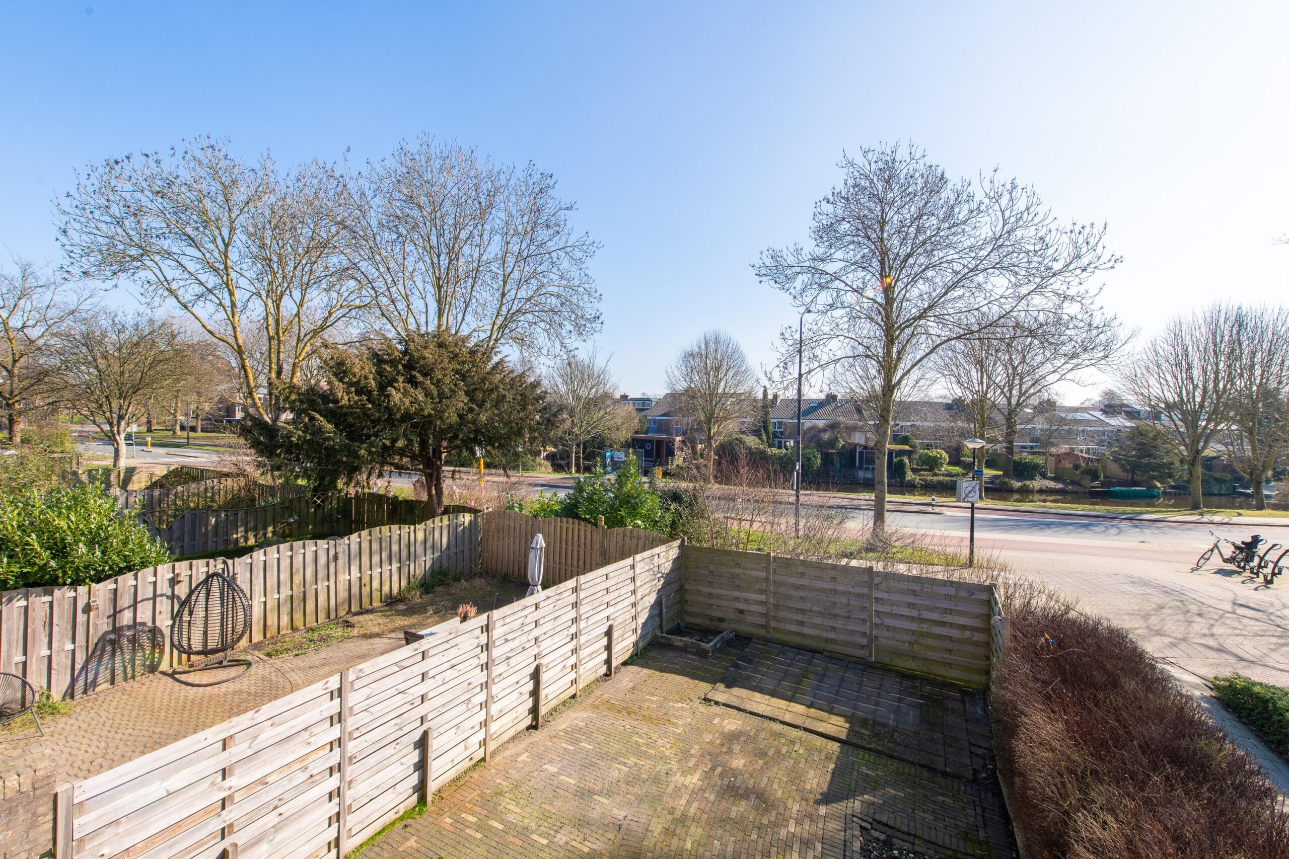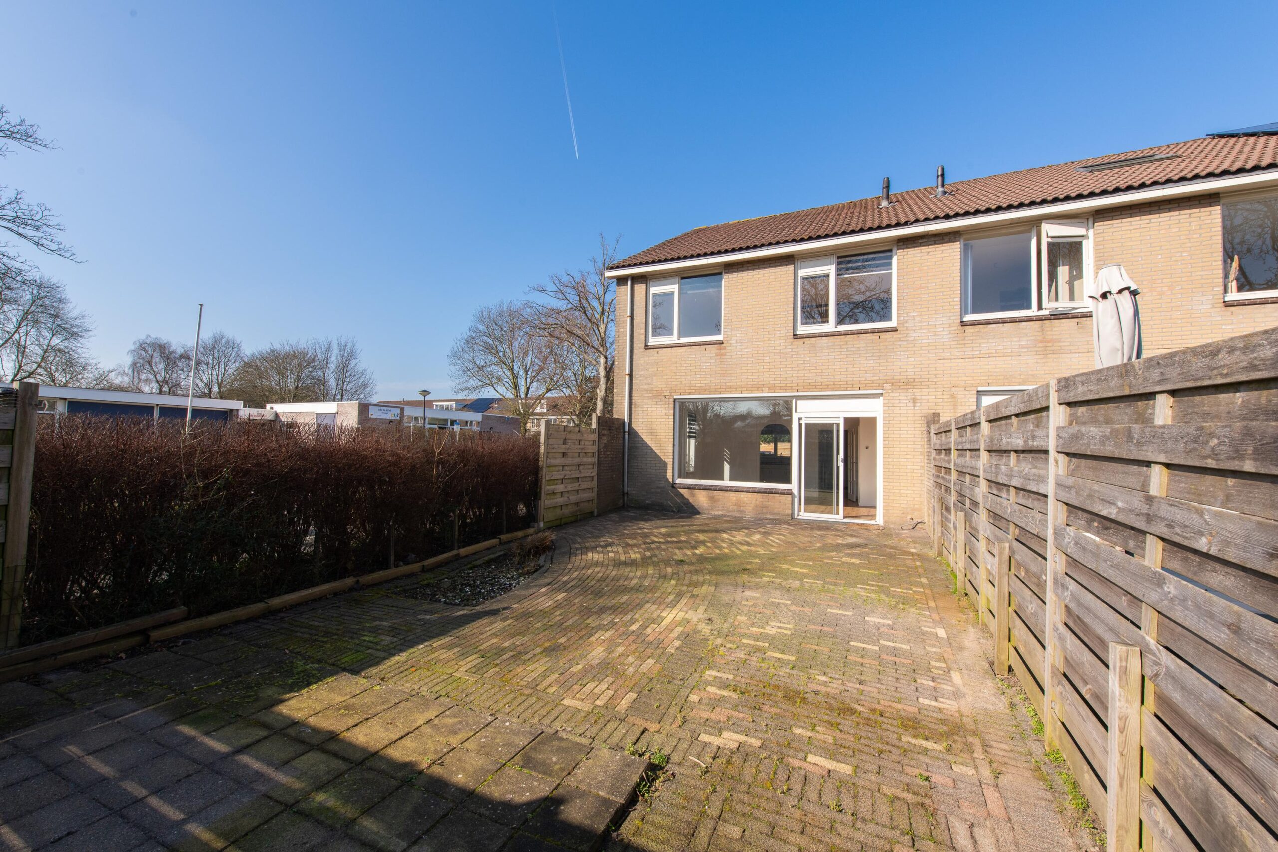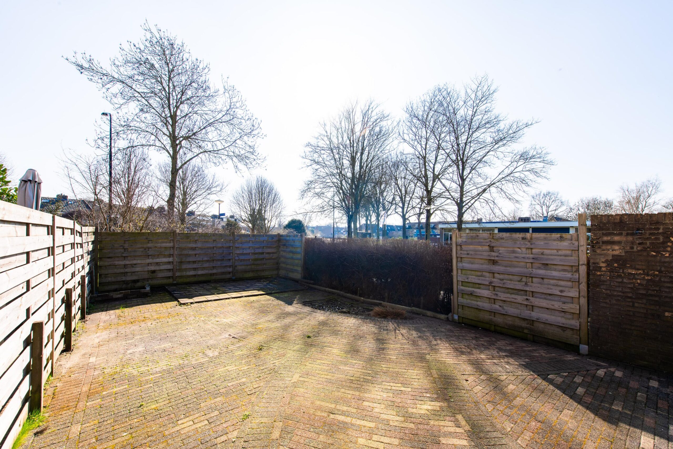 De betegelde achtertuin biedt genoeg ruimte voor verschillende mogelijkheden. Hier kunt u in principe uw eigen creativiteit op loslaten en het zo leuk maken als u zelf wilt, denk aan een berging met veranda of een stukje gras met beplanting.
