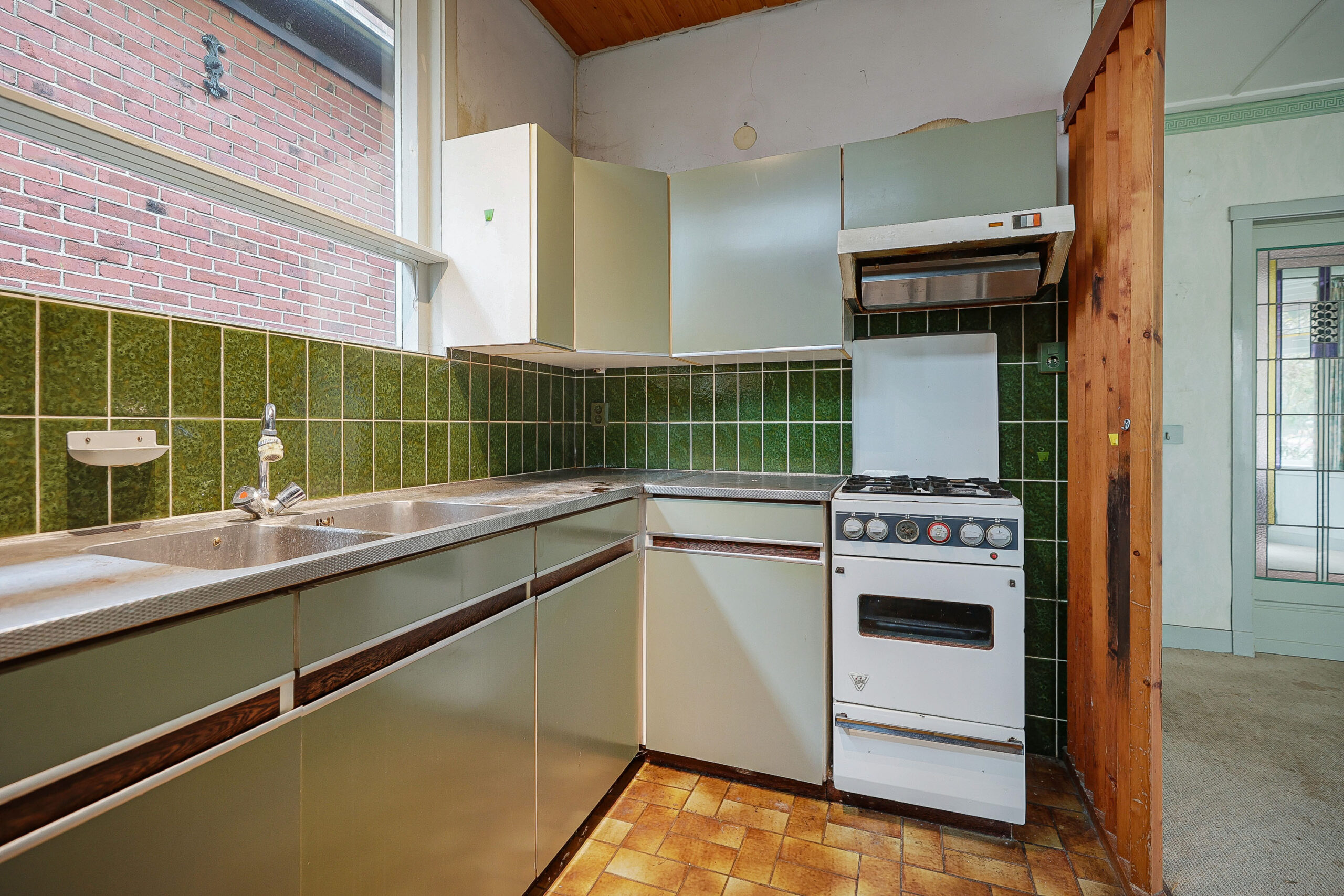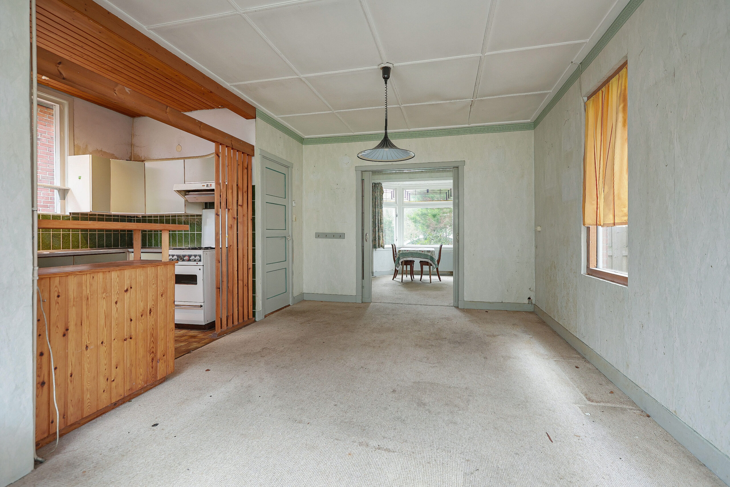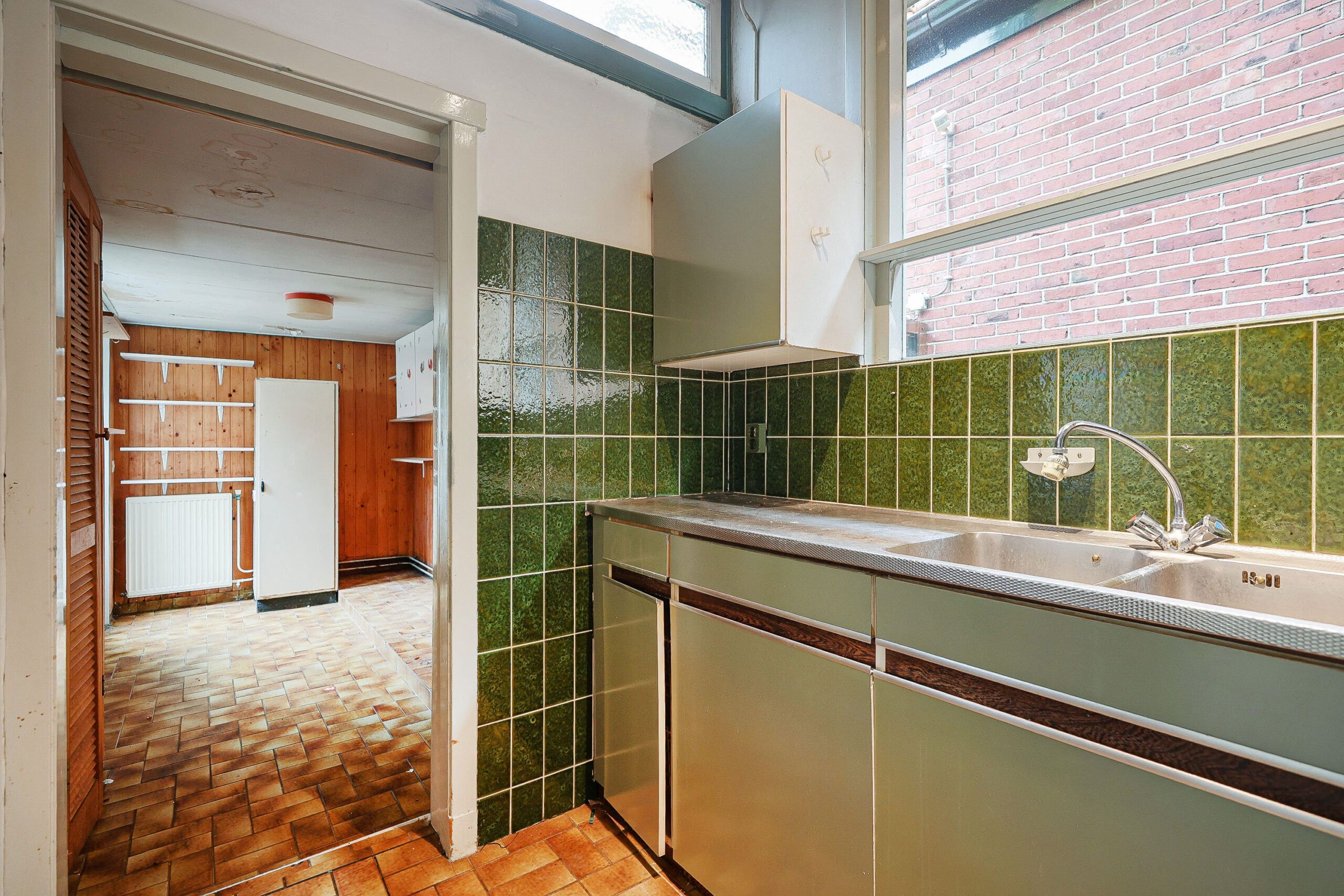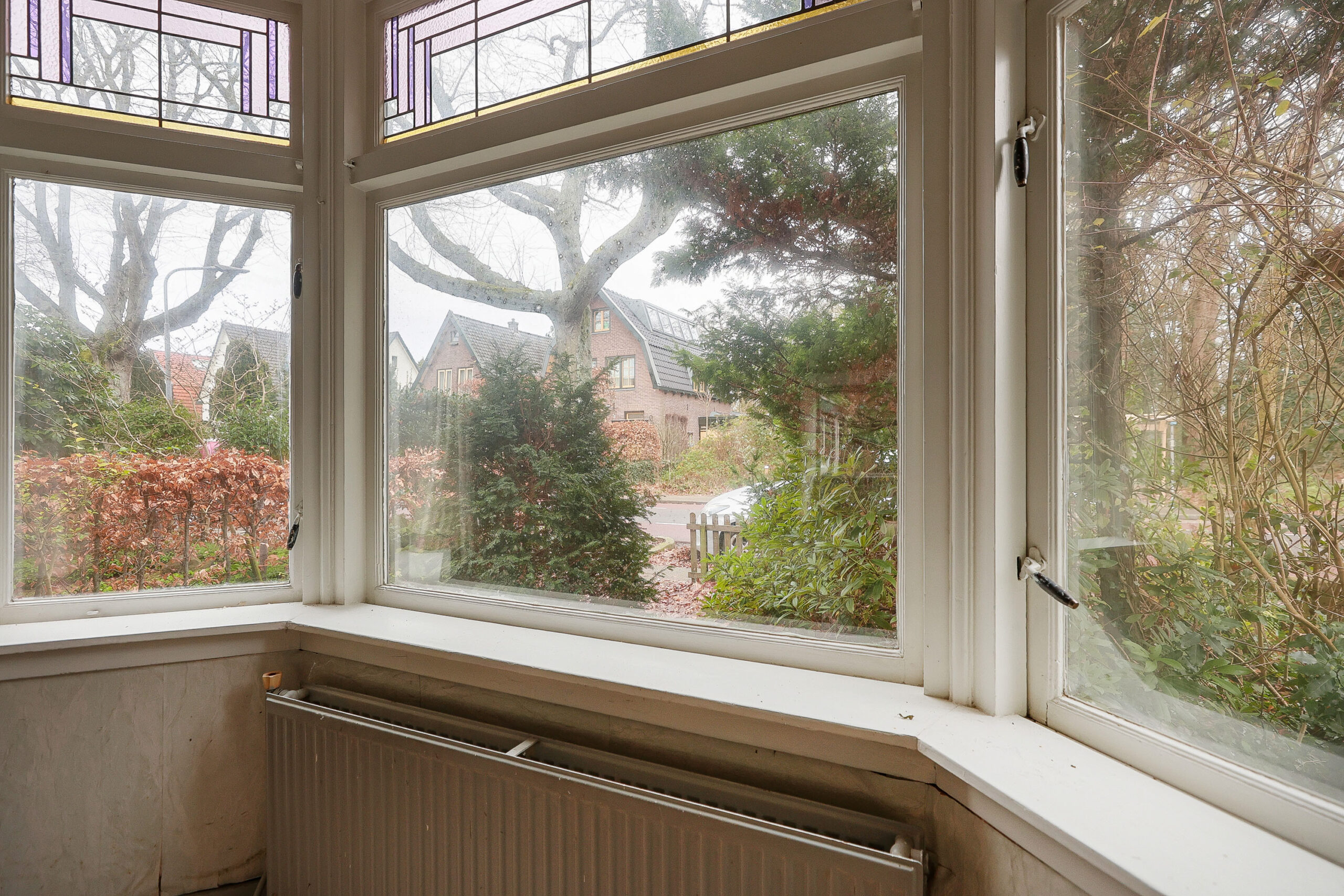 De voorkamer (ca. 12,5 m²) heeft een karakteristieke erker met glas-in-lood en en-suite deuren naar de woonkamer. De achtergelegen woonkamer (ca. 27,5 m²) is royaal, biedt toegang tot de achtertuin en beschikt over een open keuken. Vanuit de keuken bereikt u de bijkeuken (ca. 7,5 m²) met aansluiting voor wasmachine en droger en de cv-opstelling.