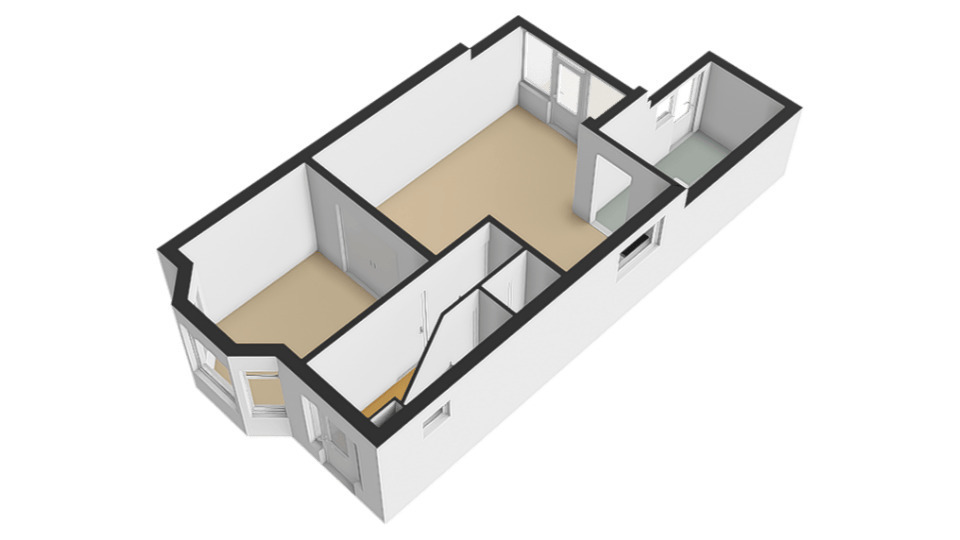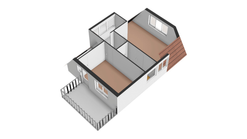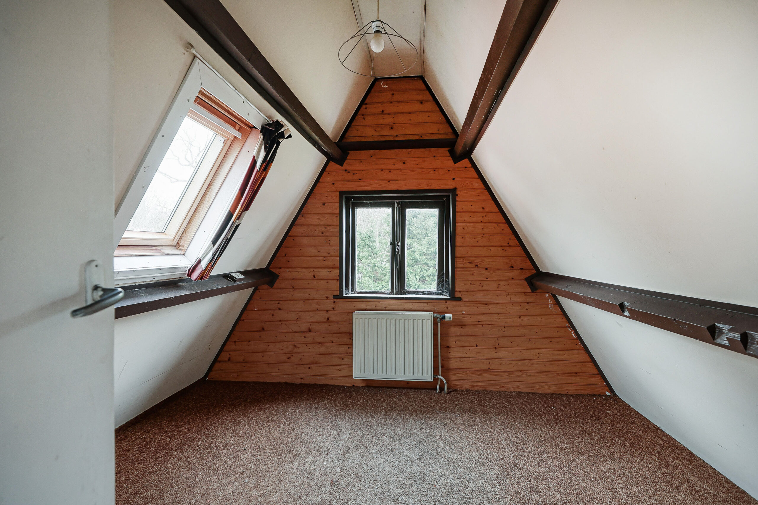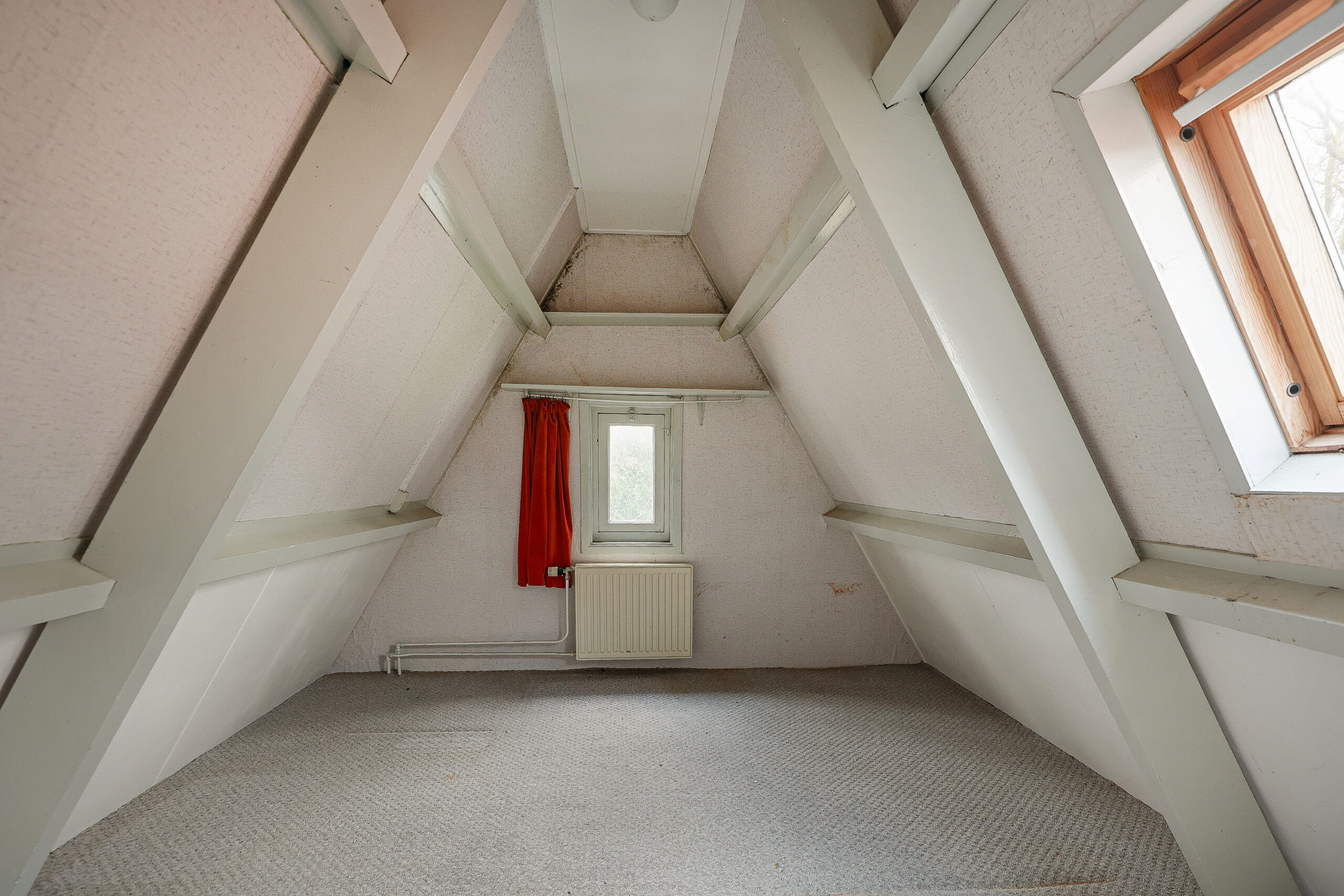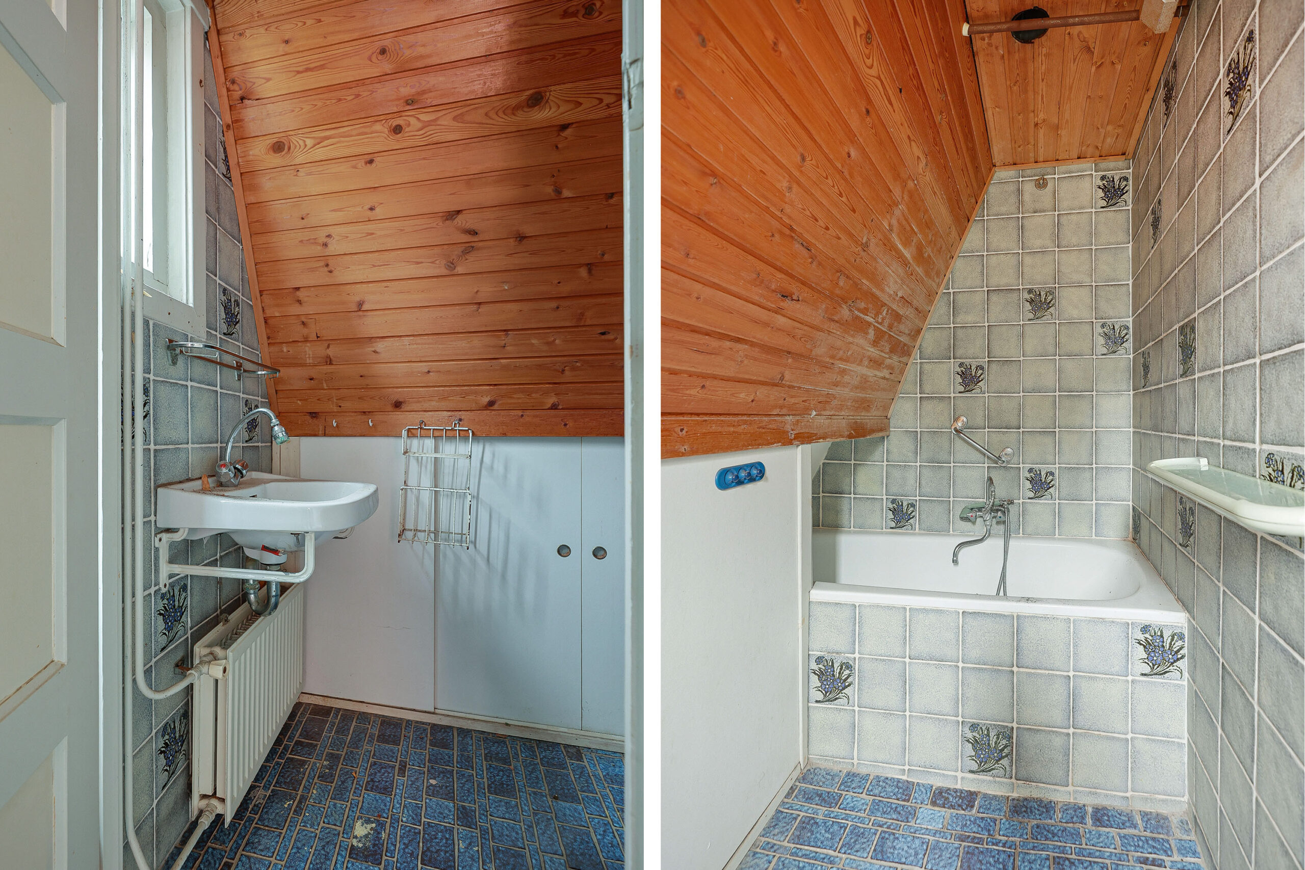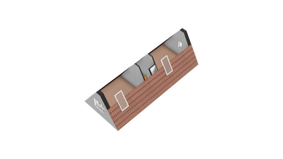 Op de tweede verdieping bevindt zich een overloop met wastafel en bergkast. Vanaf hier zijn, onder het schuine dak, twee slaapkamers (beide ca. 5 m²) bereikbaar, elk voorzien van een dakraam.