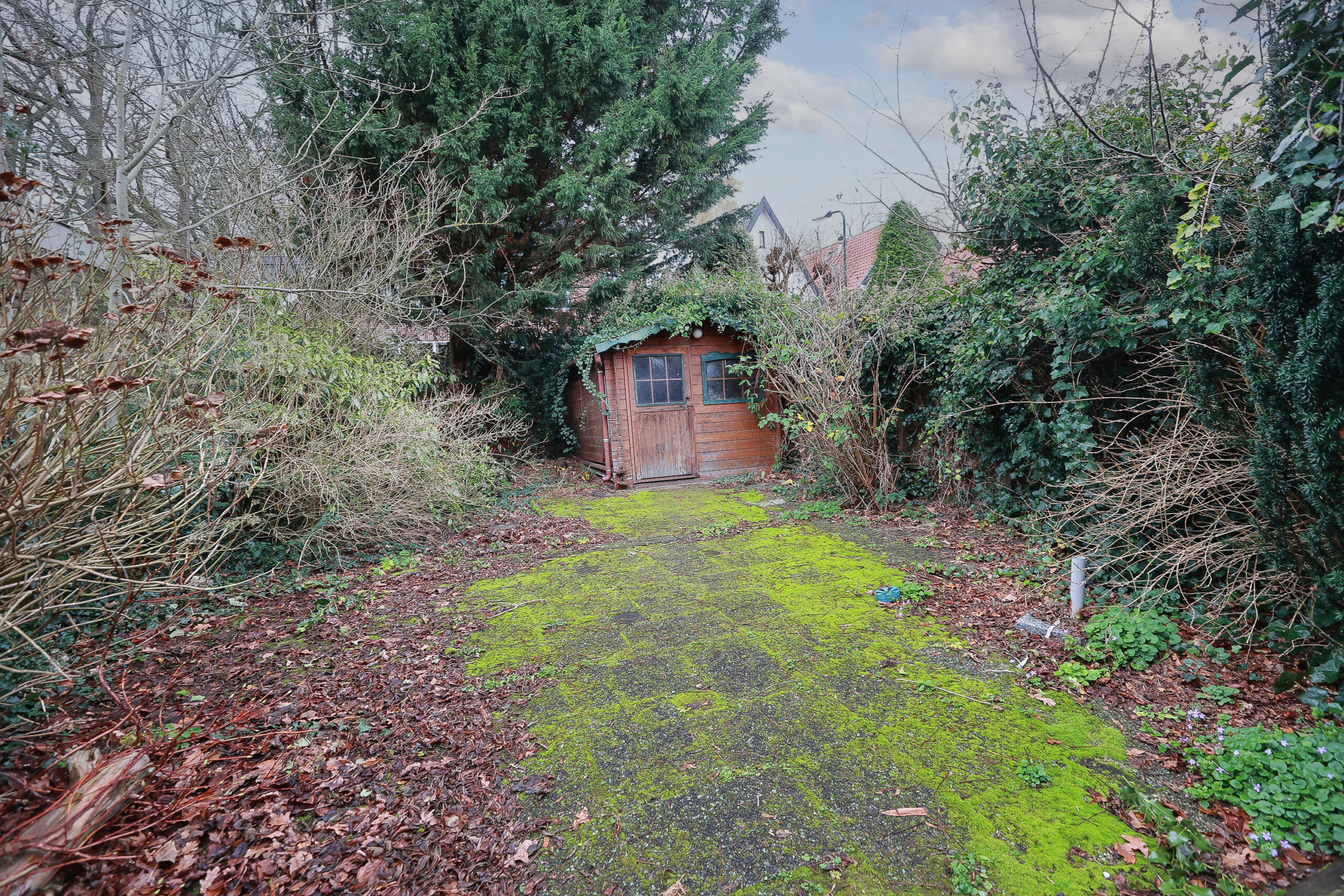 Via de zijkant van de woning bereikt u de achtertuin: een royale, groene tuin op het westen (ca. 80 m²), waar u in de zomer vrijwel de hele dag van de zon kunt genieten. Achter in de tuin staat een praktische berging (ca. 8 m²).
