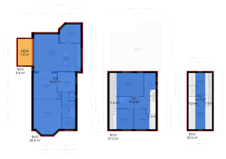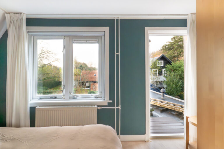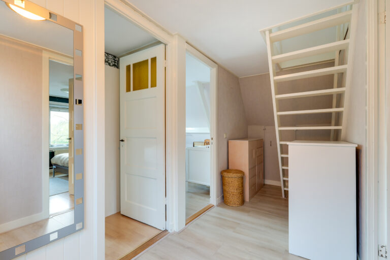 Via de vaste trap bereikt u de overloop met laminaatvloer. Hier bevinden zich drie slaapkamers van respectievelijk ca. 12 m², 8 m² en 7 m². De grootste slaapkamer beschikt over een heerlijk dakterras waar u geniet van de middag- en avondzon.