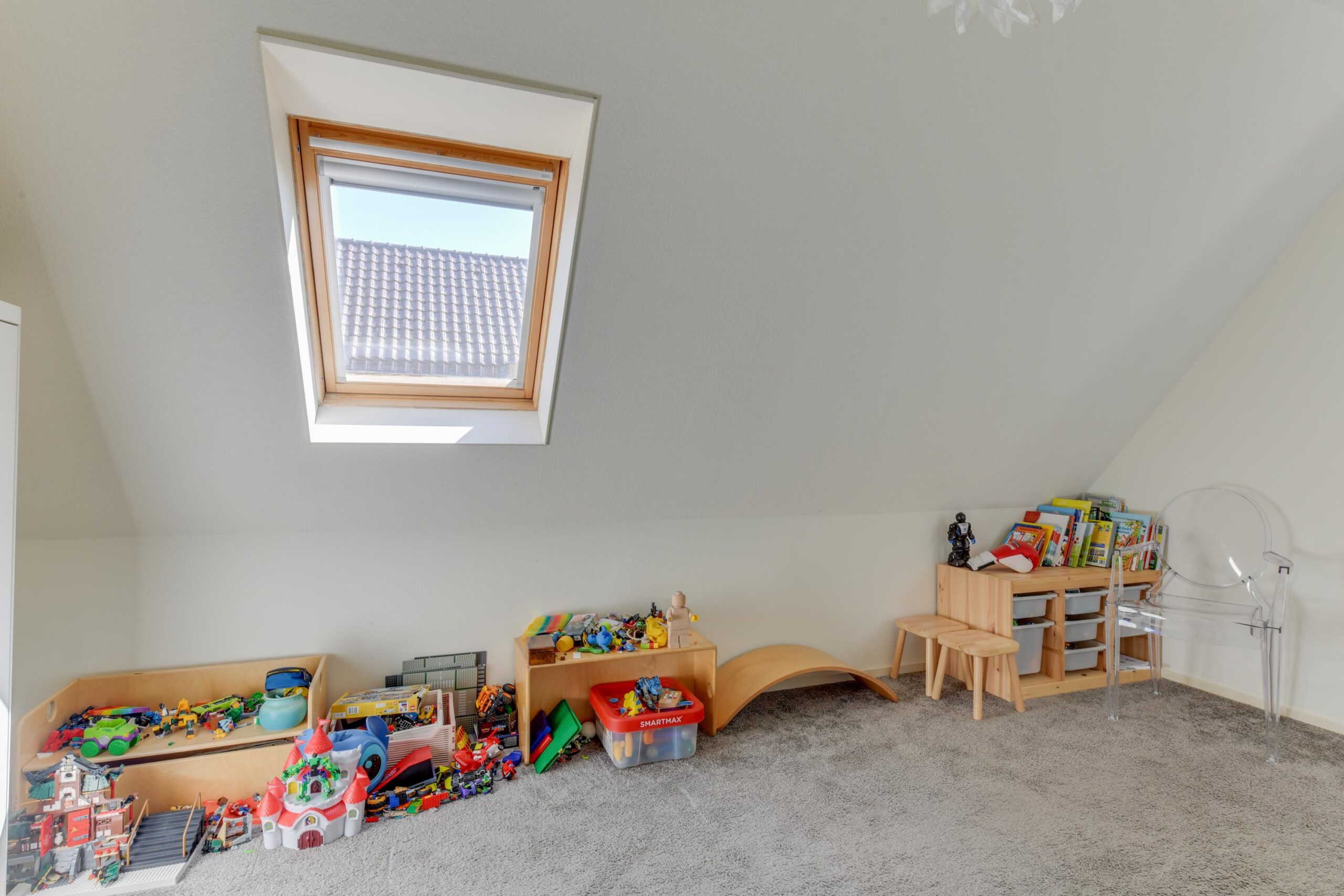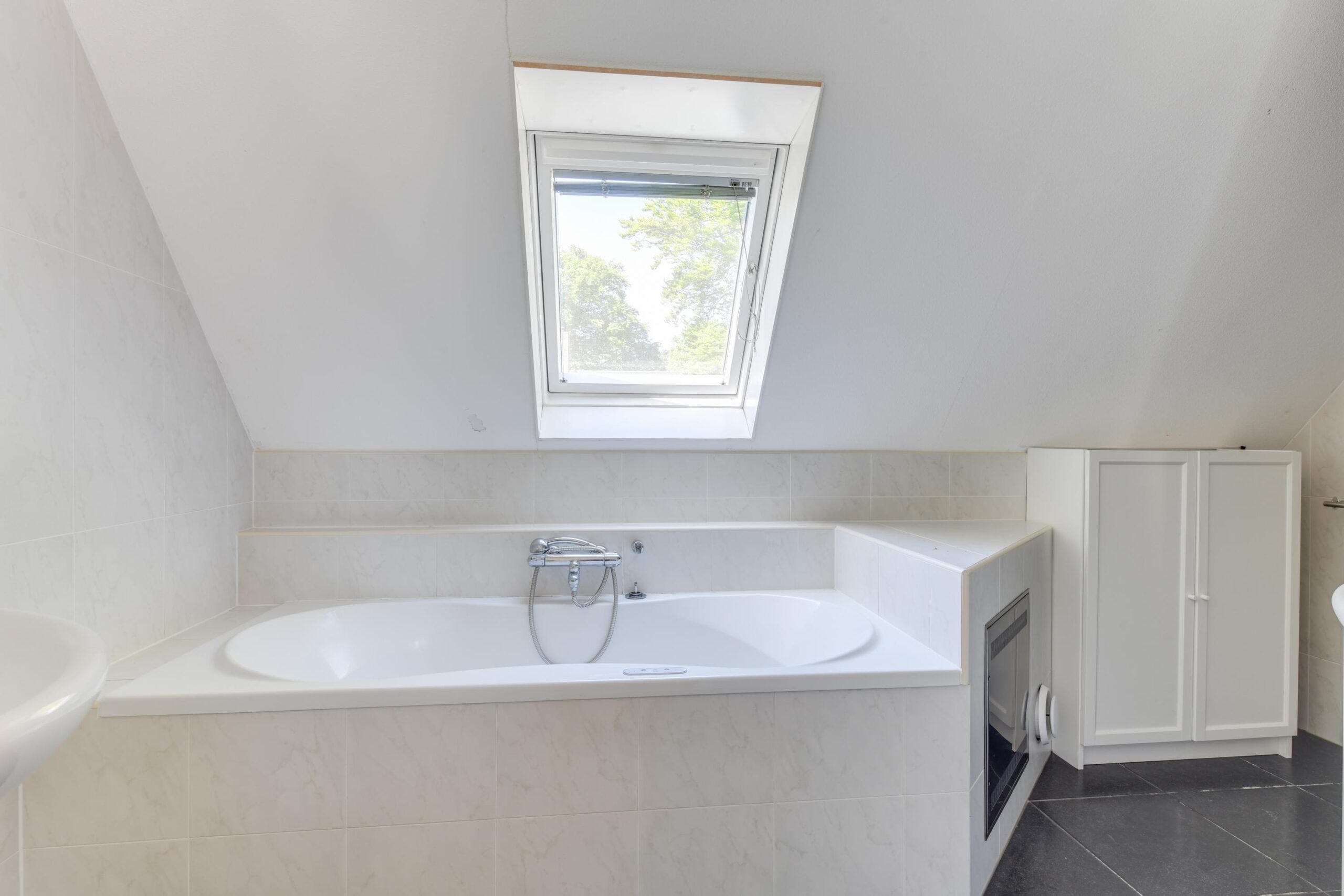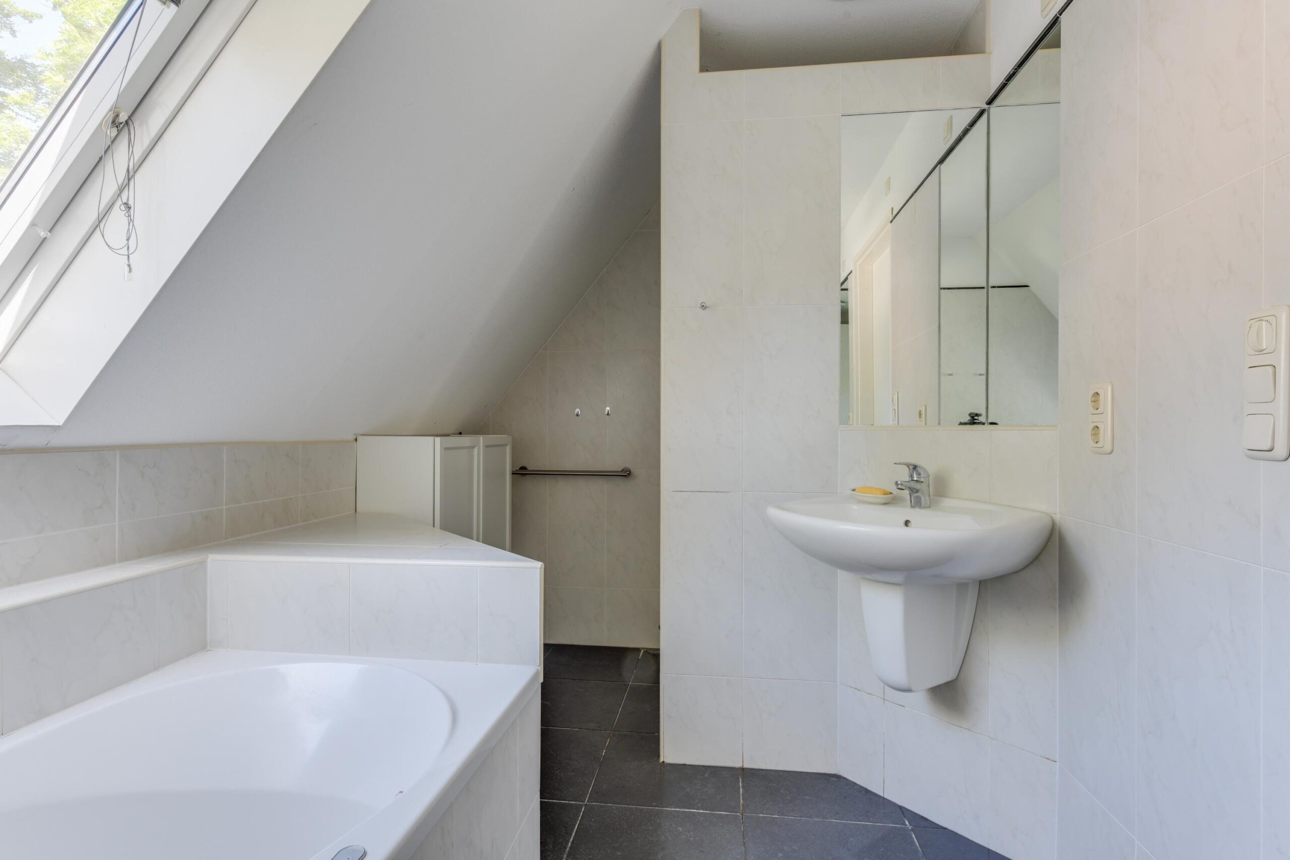 Via de vaste trap bereikt u de overloop (ca. 13 m²), die toegang biedt tot alle vertrekken. De eerste verdieping herbergt drie uitstekend bemeten slaapkamers (ca. 16 m², 18 m² en 31 m²). De modern afgewerkte badkamer is voorzien van een ruime douche, ligbad en twee wastafels. De ruime slaapkamer met badkamer ensuite aan de achterzijde van de woning is maar liefst 31 m², en biedt ruimte voor een inloopkast. De overloop geeft ook toegang tot de technische ruimte, waar u de cv-ketel en de heteluchtverwarmingsunit vindt, en een los toilet met fonteintje.