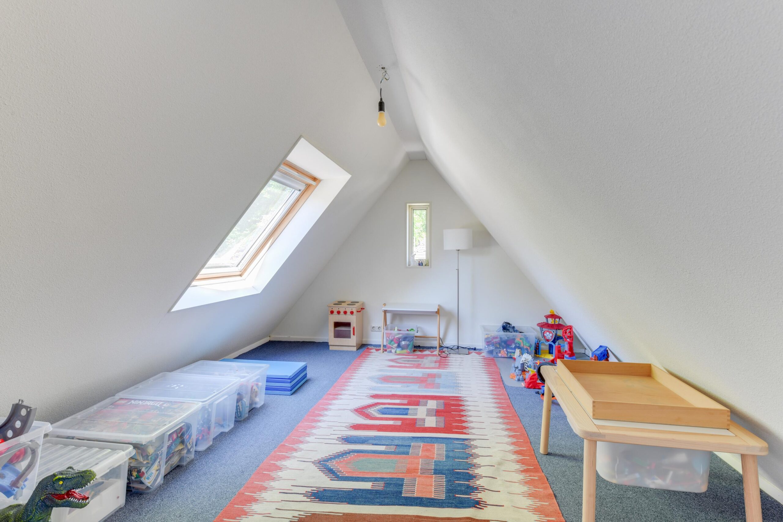 Via een vaste trap komt u op de ruime zolderoverloop (ca. 11 m²) die toegang biedt tot twee slaapkamers van respectievelijk 18 m² en 19 m², beide voorzien van een dakraam.