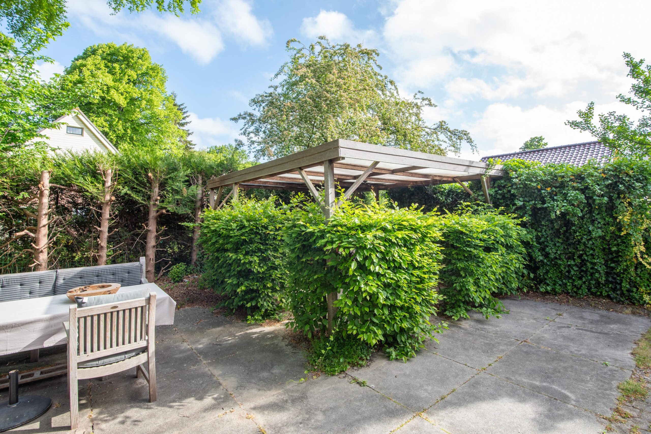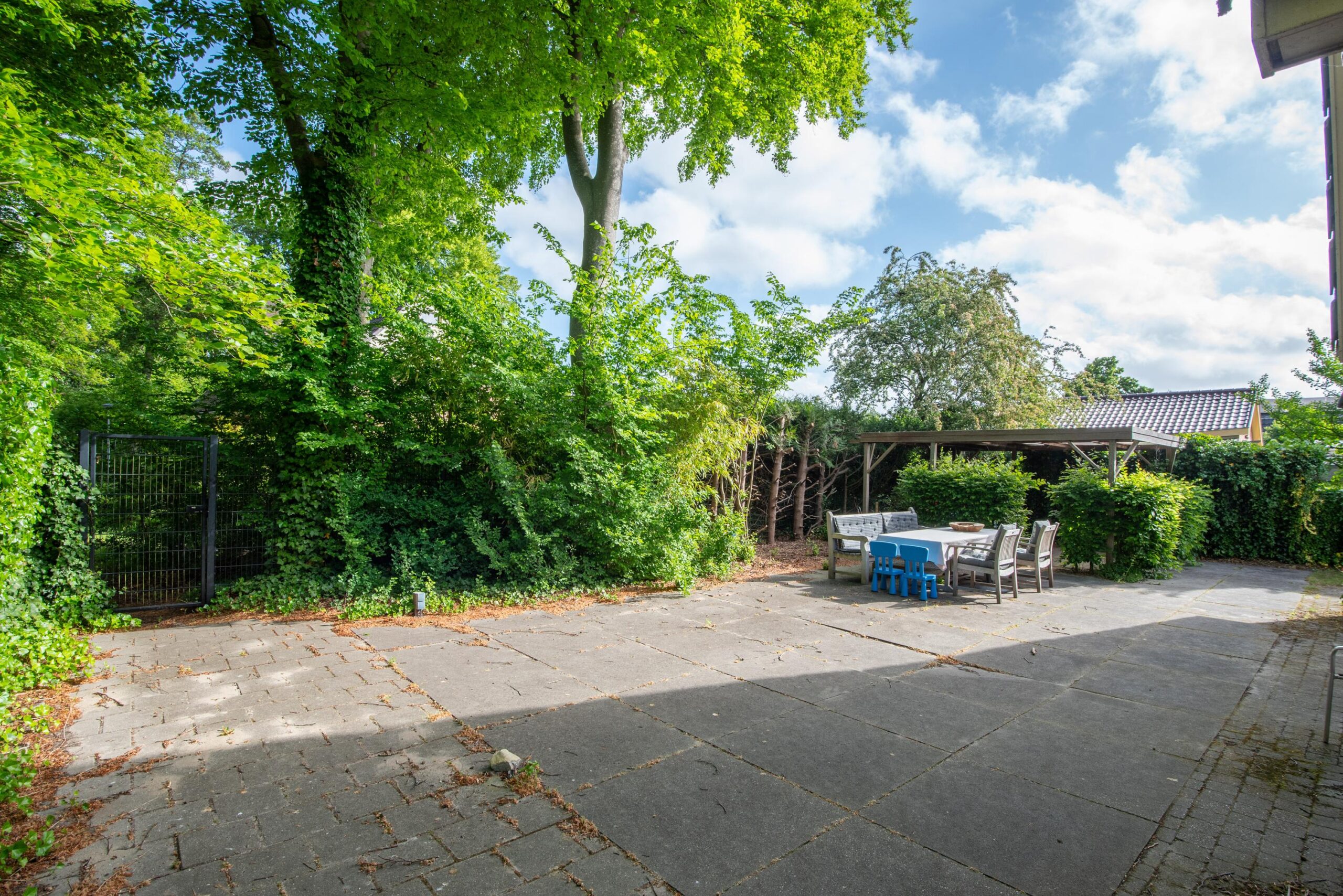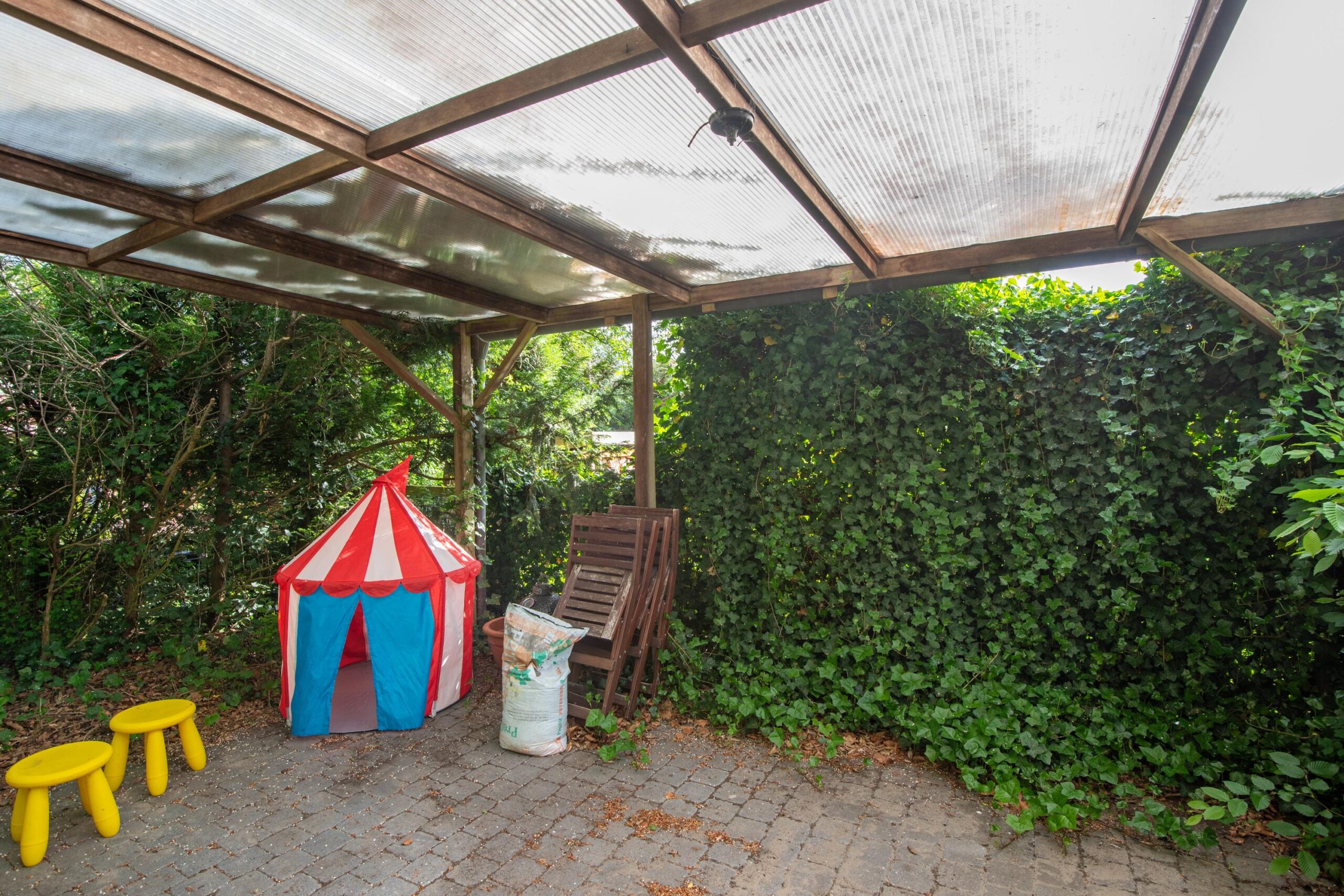 De ruime tuin rondom de woning biedt volledige privacy. Er is een groot terras waar u heerlijk kunt ontspannen, terwijl de rest van de tuin verzorgd is betegeld en is voorzien van een overkapping. Ook biedt de voortuin gelegenheid om te parkeren op eigen erf voor 3 á 4 auto’s.