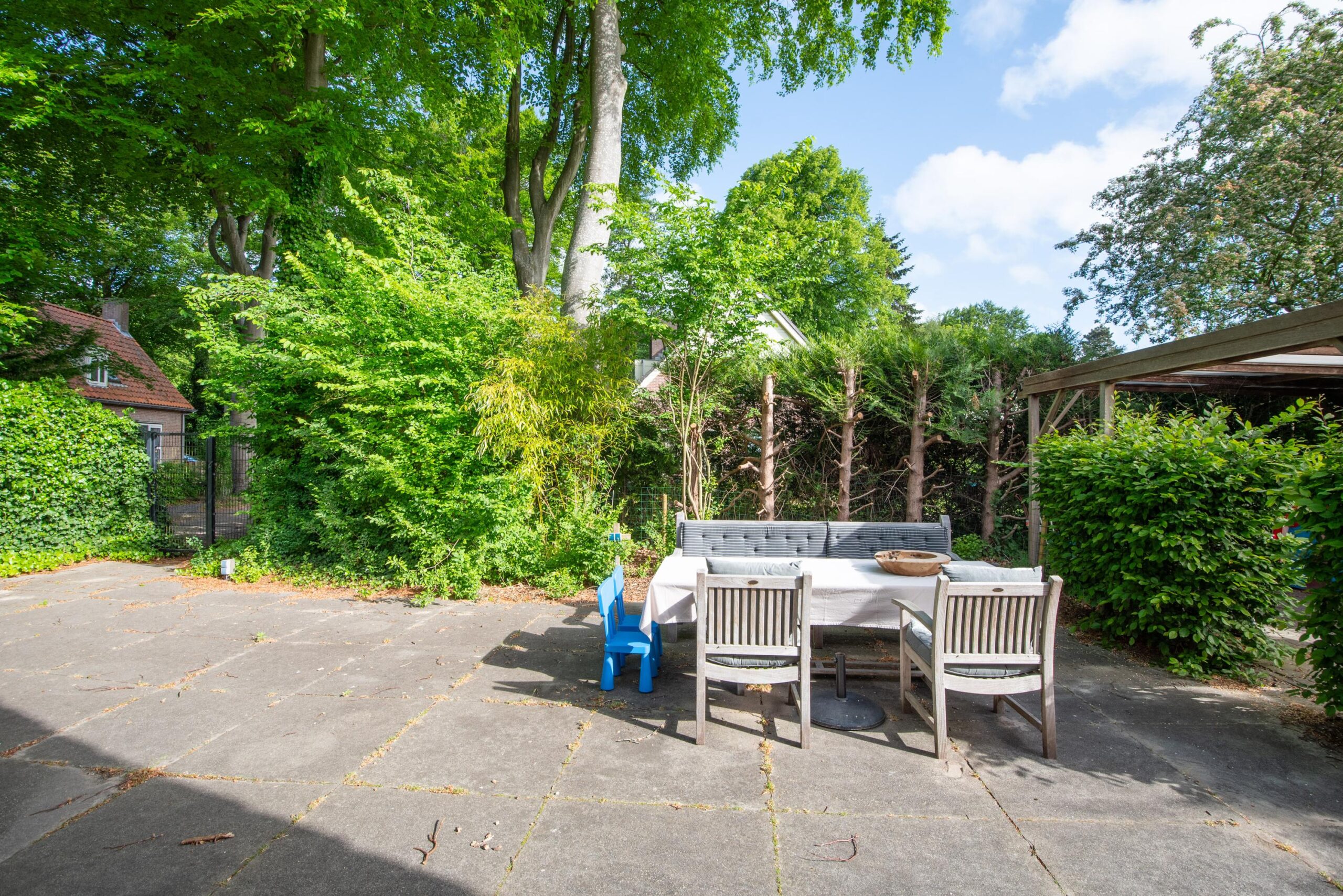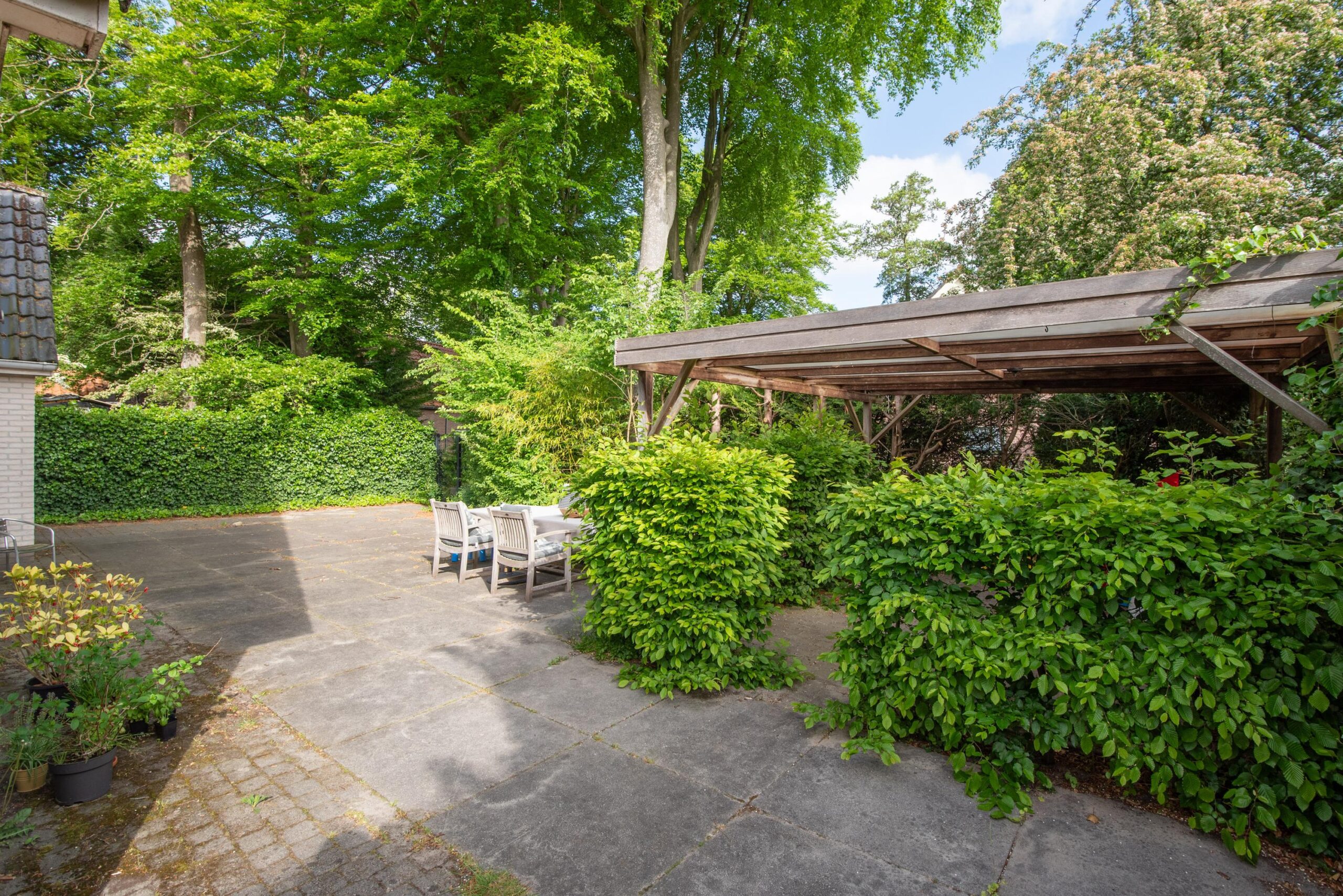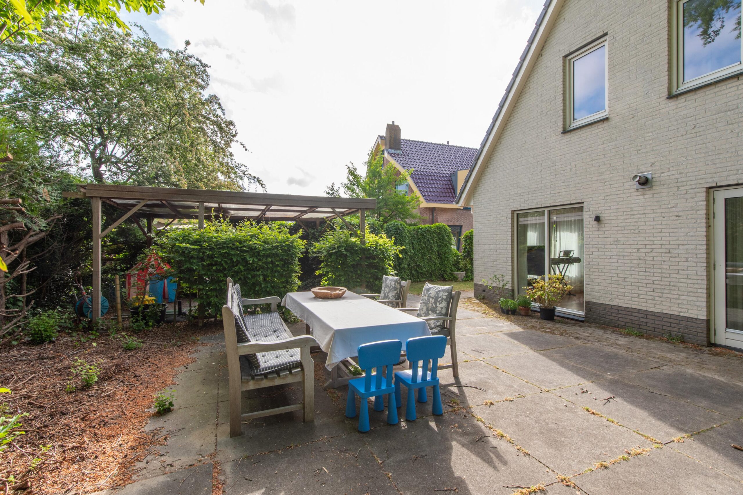 De ruime tuin rondom de woning biedt volledige privacy. Er is een groot terras waar u heerlijk kunt ontspannen, terwijl de rest van de tuin verzorgd is betegeld en is voorzien van een overkapping. Ook biedt de voortuin gelegenheid om te parkeren op eigen erf voor 3 á 4 auto’s.