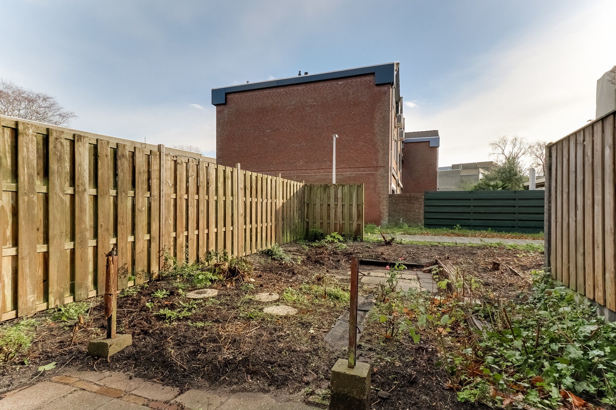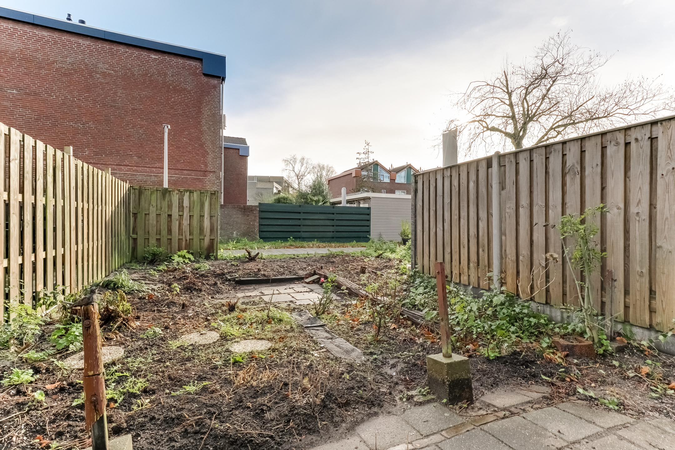 De achtertuin ligt op het zuidoosten, waardoor je hier vrijwel de hele dag van de zon kunt genieten. De tuin is op dit moment niet heel netjes, maar biedt daardoor juist de kans om volledig naar eigen smaak opnieuw ingericht te worden.