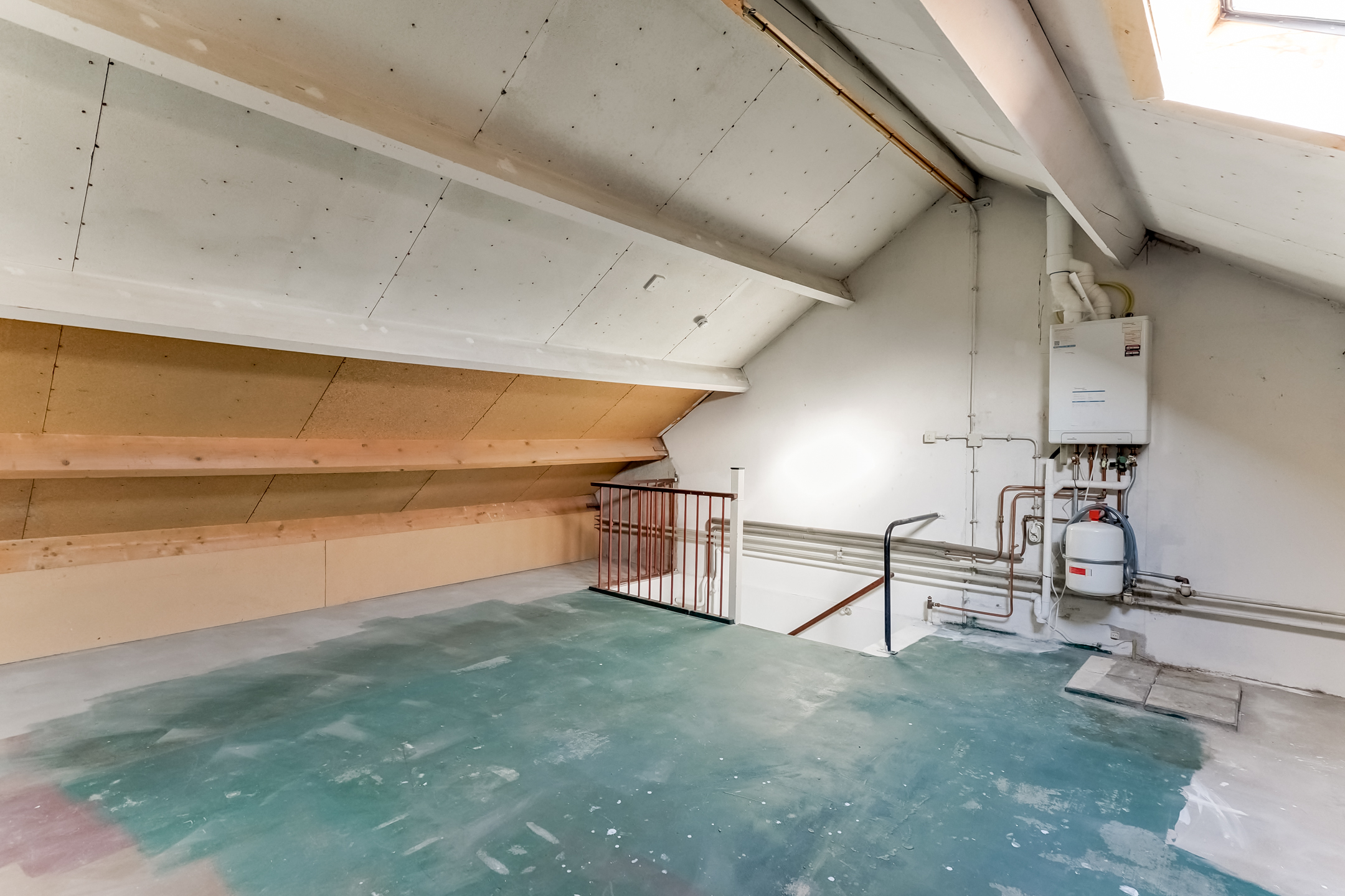 Een royale zolder met veel mogelijkheden! Met een slimme indeling kan hier eenvoudig een vierde slaapkamer of werkruimte worden gerealiseerd, terwijl er nog voldoende bergruimte overblijft. Door het plaatsen van een groter dakraam kan maar liefst 20 m² extra woonoppervlakte toegevoegd worden.