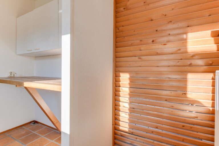 De praktische berging (ca. 6 m²) met elektra bevindt zich aan de voorzijde van de woning. Ideaal om bij thuiskomst eenvoudig de fiets te stallen of spullen op te bergen die niet dagelijks nodig zijn.