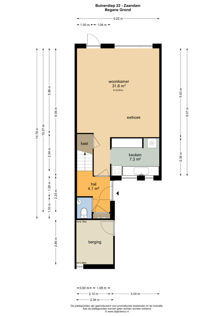 U komt binnen in de hal met toegang tot het toilet, de trapopgang en de woonkamer. De woonkamer (ca. 31,5 m²) is ruim en licht en biedt genoeg mogelijkheden voor een gezellige zithoek én een eettafel. De keuken (ca. 7,5 m²) is eenvoudig, maar met wat liefde en inspiratie maakt u hier een moderne leefkeuken van waar u heerlijk kunt koken en samenzijn.