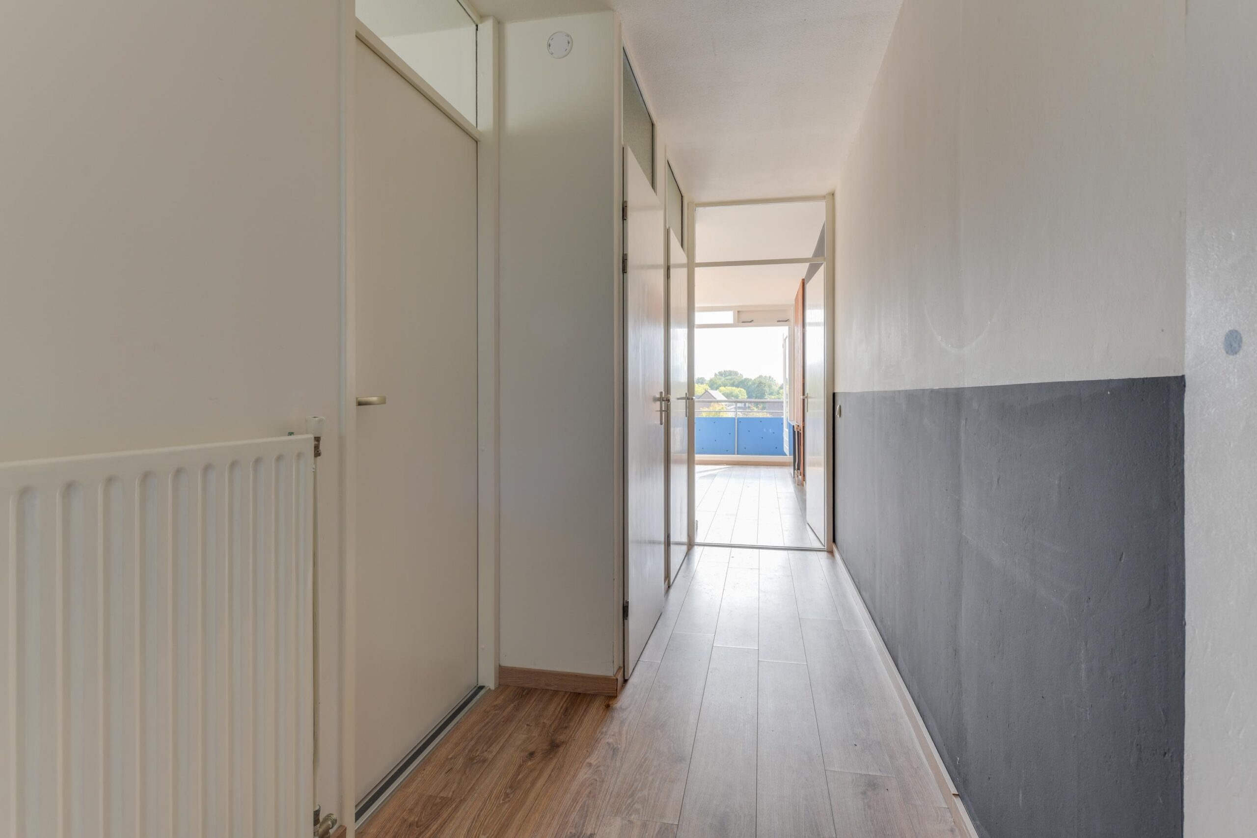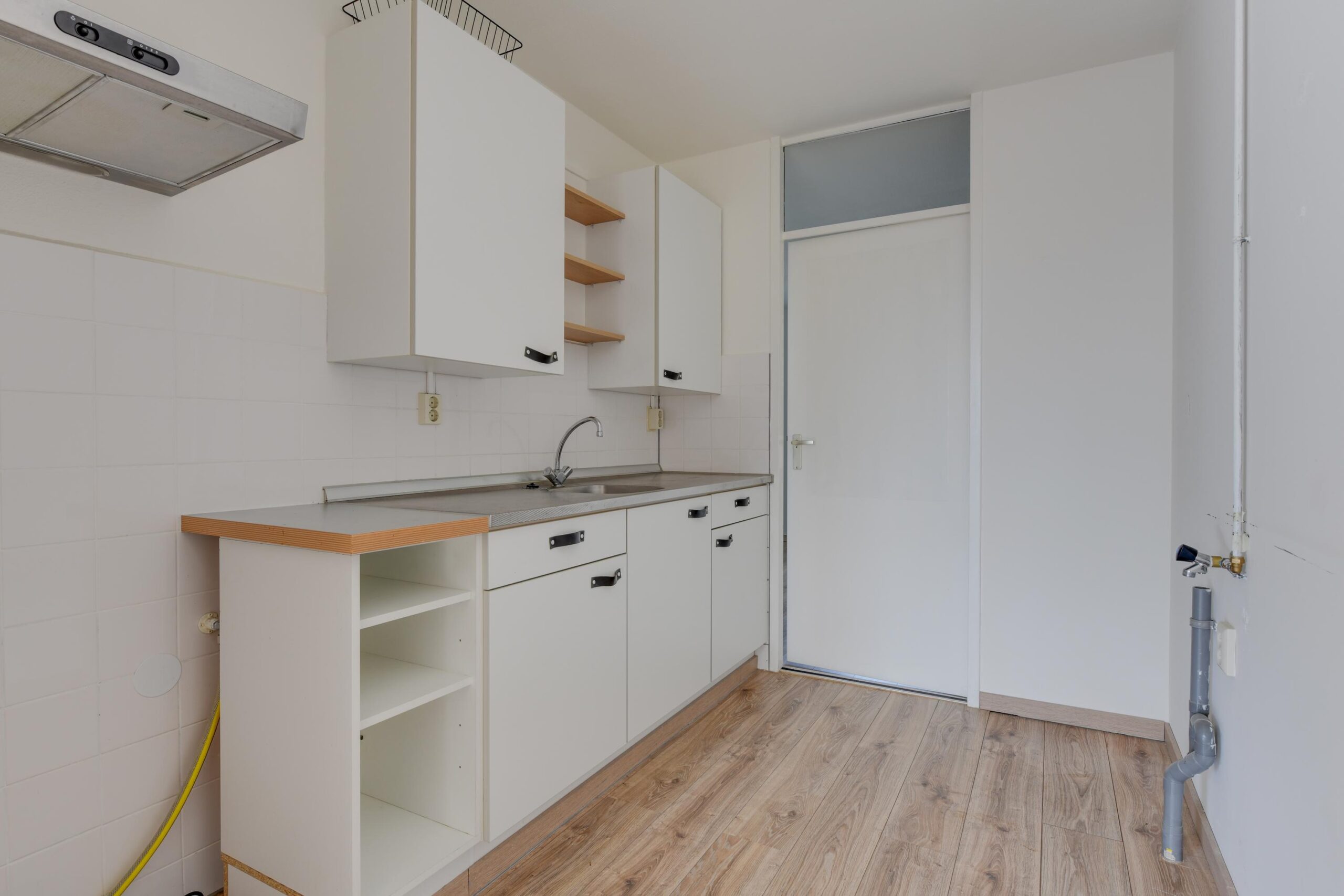 U stapt binnen in de hal (ca. 7 m²) met vaste kast en CV-opstelling. Vanuit hier heeft u toegang tot de lichte woonkamer (ca. 27 m²) met openslaande deuren naar het balkon. De woonkamer heeft een mooie laminaatvloer en meerdere ramen wat voor een fijne lichte sfeer in het appartement zorgt. Vanaf het balkon (ca. 4 m²) kunt u lekker genieten van een kop koffie en het uitzicht. De half open keuken (ca. 6 m²) is ingericht met een eenvoudig keukenblok.